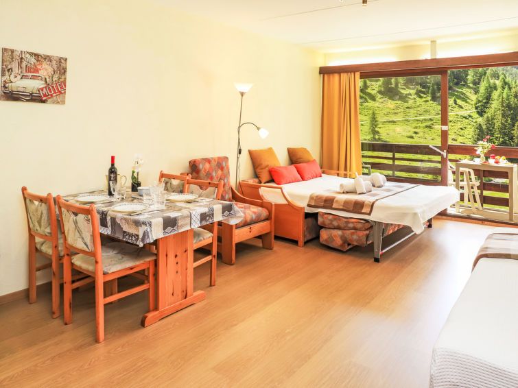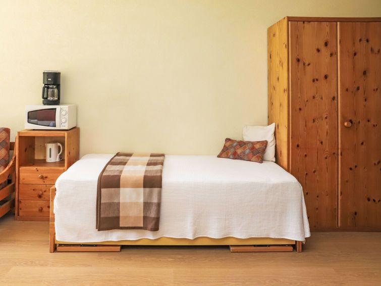 "Rosablanche C53", 1-room apartment 30 m2 on 5th floor. Simple furnishings: living/dining room with 1 sofabed and 1 pull-out bed (2 pers.), cable TV. Kitchenette (2 hot plates, kettle, microwave, electric coffee machine). Bath/WC. Balcony, south facing position. View of the ski run.