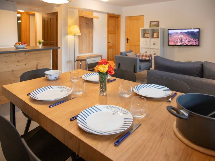 Gîte located on the heights of the resort, in a very pleasant neighborhood. The main room is functional and spacious. The kitchen area, very recent, is practical. A few utensils are missing, but this is not a major problem. Although small, the bedrooms are welcoming and the mattresses comfortable. Outside, there is a table and four chairs. The chalet is clearly undergoing renovations, but this does not prevent you from staying there pleasantly.