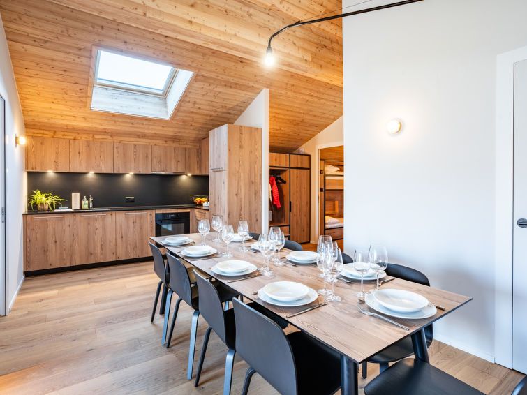 "4 room apartment STANDARD", 4-room apartment 94 to 104 m2. Comfortable and modern furnishings: living/dining room with 1 double sofabed (160 cm), TV and international TV channels (flat screen). 2 rooms, each room with 1 double bed (2 x 90 cm). 1 room with 1 x 2 bunk beds. Open kitchen (oven, dishwasher, electric coffee machine, Capsules for coffee machine (Malongo), raclette grill, fondue Set (chinoise, cheese)).