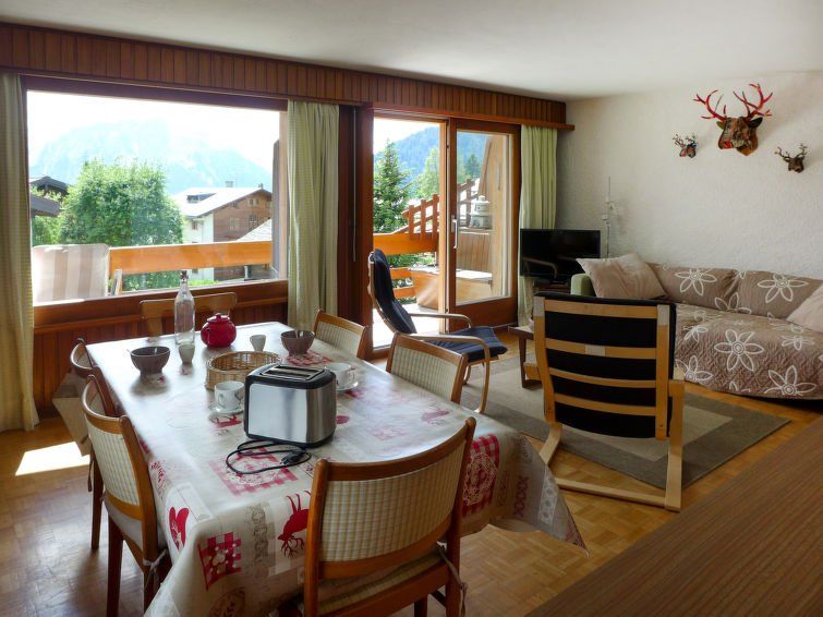 There were spacious social areas, a well-equipped kitchen and the terrace was in the middle of brilliant sunshine on the days the sun peeked out. The only two things missing were a fireplace and ski-in/ski-out. Otherwise perfect. About 10 minutes walk partly uphill to the nearest lift and also uphill from the lift. Moulins doesn't work so you can't assume it..