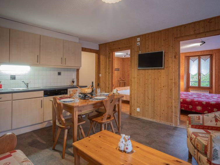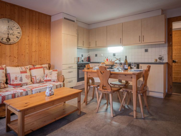 Quiet apartment with a nice view of the Seya and the Petit Muveran, near the Jorasse ski lift, shops and baths.