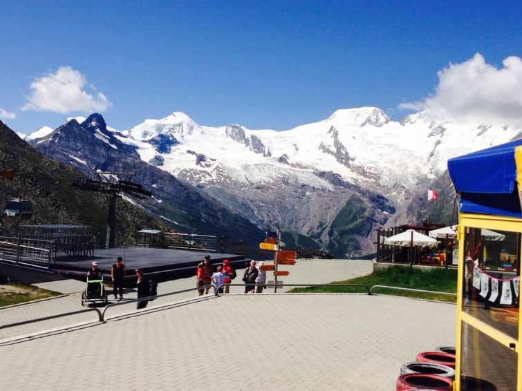 43 m2. More information by the provider: Top apartments & location - 140 m to cableways! Summerhit cableways & postbus INCLUDED. Nice terrace with garden furniture. Wi-Fi and own parking space for free. Within 20-200 meters: Cableway Hohsaas, ice rink, cross country slopes (20m), bus stop towards Saas-Fee (50m), shopping and entertainment such as restaurants, hiking and mountainbike trails.