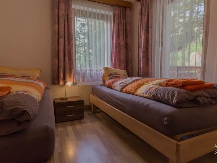 5 1/2 room's flat (150m2) composed by a living-room, 4 double bed-rooms, kitchen, shower/bath/WC, WC, radio, television.