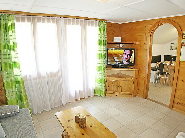 "Bergfink Dachgeschoss", 4-room apartment 84 m2 on 3rd floor. Partly with sloping ceilings, renovated in 2013, beautiful and cosy furnishings: living/dining room with satellite TV (flat screen), hi-fi system. Exit to the balcony, west facing position. 1 double bedroom with sloping ceilings with 2 beds.