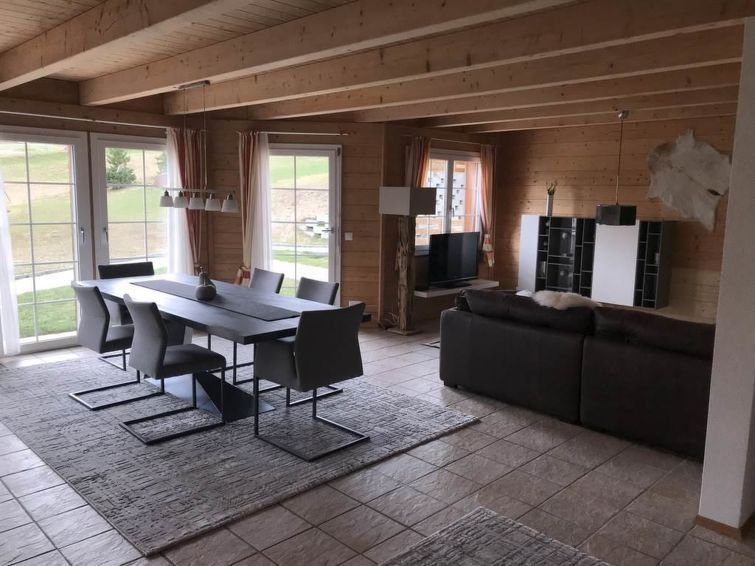 Quiet (and sunny) location - ideal for families who don't want to be in the village center. Chalet very nicely furnished - with additional sauna and the kitchen lacks nothing. Ski bus stations within 3-4 minutes walk