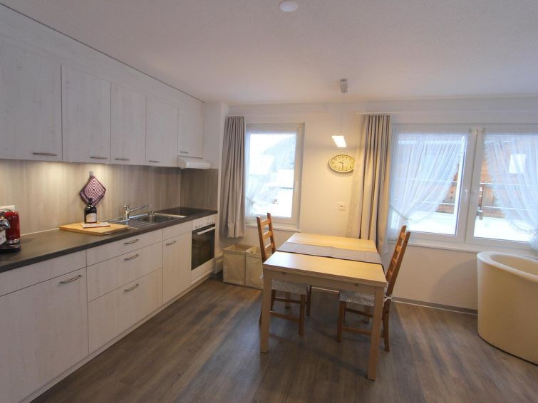3-room (2. floor; 61m2) apartment with 4 beds, living/dining room, open kitchen, 1 double bedroom, 1 bedroom with 2 beds, shower/WC, south balcony, lift, comfortably, cosily and functionally furnished, near the ski-lifts and cablecars.