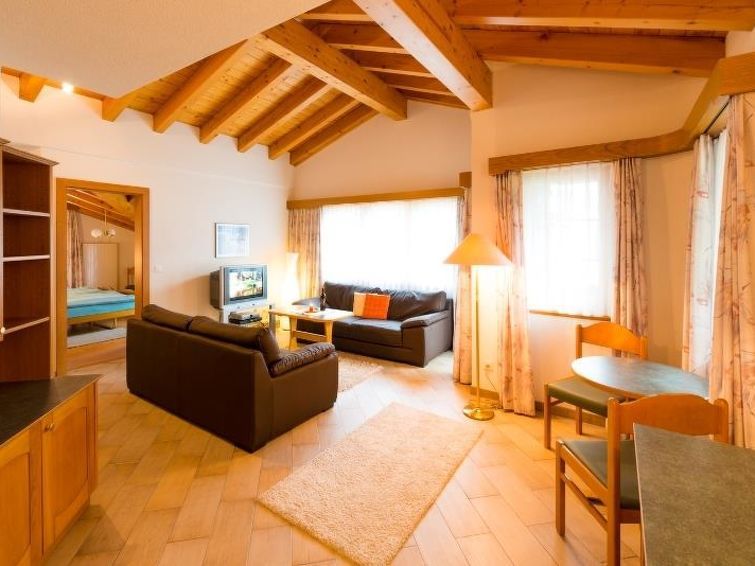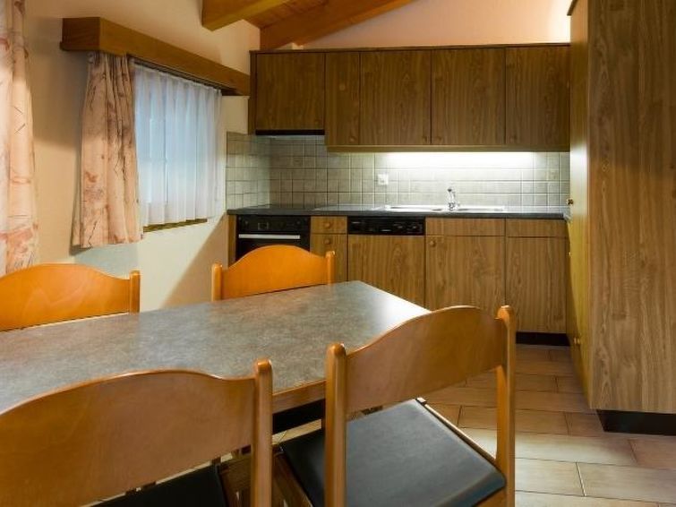 110 m2. More information by the provider: Built in 1997, sunny and central location, next to the cable car Hohsaas AG and the bus station. The flats are all very comfortable, with TV, radio, dishwasher, coffeemaker, heated skiroom, washhouse with washing machine and dryer with coin slot, elevator and parking lot.