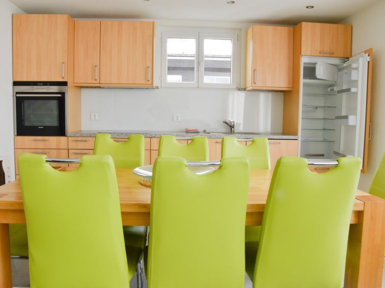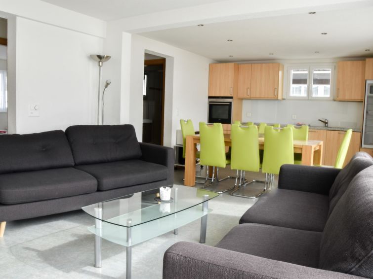 5-room apartment: 2 double room with washbasin, 2 sleeping room with 2 beds, shower/WC, bath/WC/hairdryer, big dining kitchen with refrigerator, oven, dish-washer, microwave, toaster, coffe maker and a living room with divan, TV, central heating, south balcony, ski room.