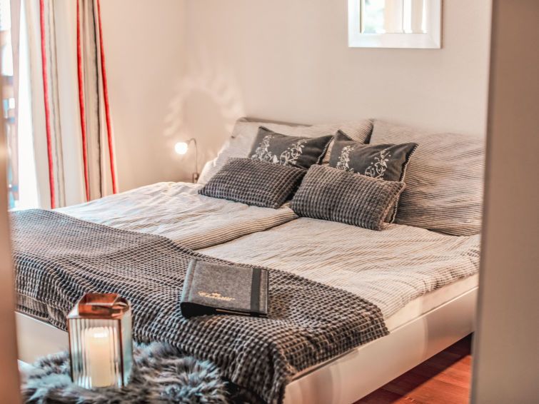 "Apartment Alphubel", 3-room apartment 85 m2 on 3rd floor. Bright, beautiful and cosy furnishings: living/dining room with Scandinavian wood stove and cable TV. Exit to the balcony. 2 double bedrooms, each room with 1 double bed (160 cm, length 200 cm), cable TV. Open kitchen (oven, dishwasher, 4 ceramic glass hob hotplates, toaster, kettle, freezer, electric coffee machine).