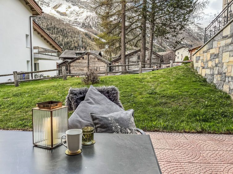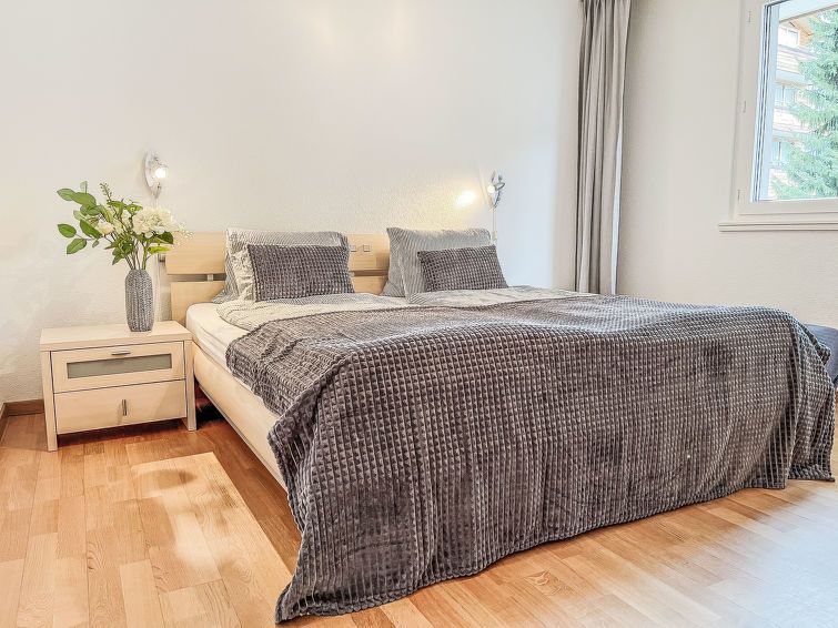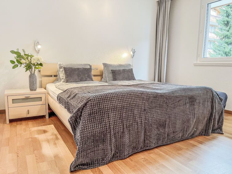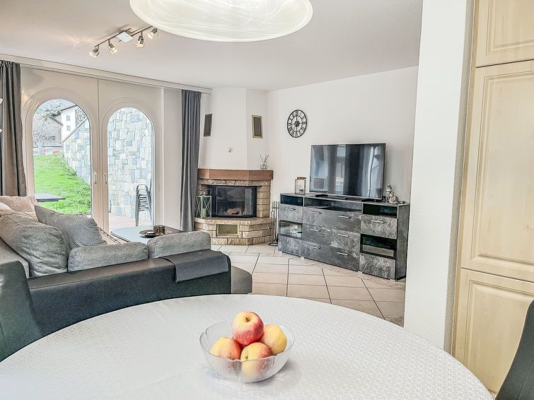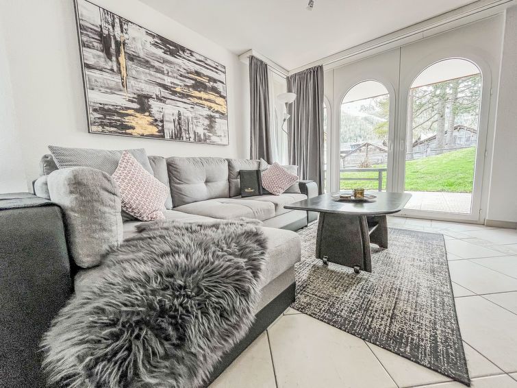 "Apartment Gämsi", 2-room apartment 55 m2, on the lower ground floor. Bright, beautiful and tasteful furnishings: living/dining room with Scandinavian wood stove, dining table and cable TV. Exit to the terrace. 1 double bedroom with 1 double bed (160 cm, length 200 cm). Open kitchen (dishwasher, 4 ceramic glass hob hotplates, toaster, kettle, electric coffee machine, fondue Set (cheese)).