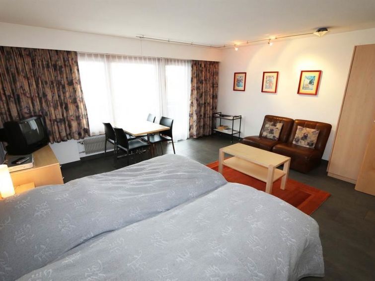 Studio located in quiet and sunny area, consisting of 1 bed-sitting room with 2 beds, kitchen, 1 bath/WC and south-facing balcony with amazing mountain view.
