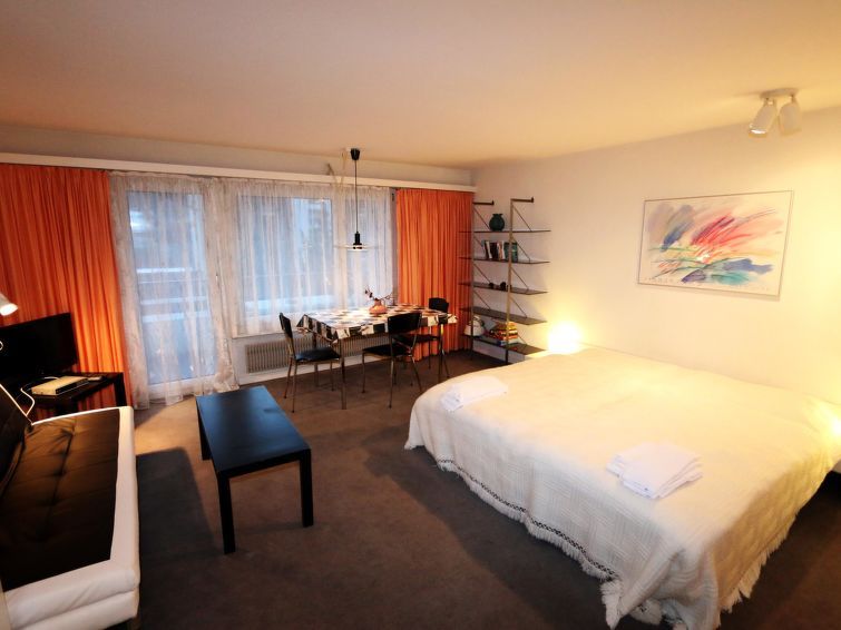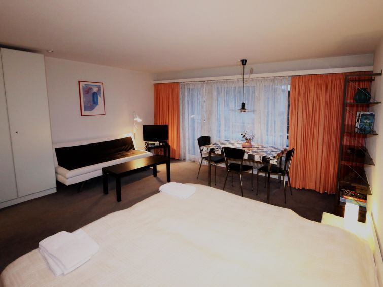 Studio located in quiet and sunny area, consisting of 1 bed-sitting room with 2 beds, kitchen, 1 bath/WC and south-facing balcony with amazing mountain view.