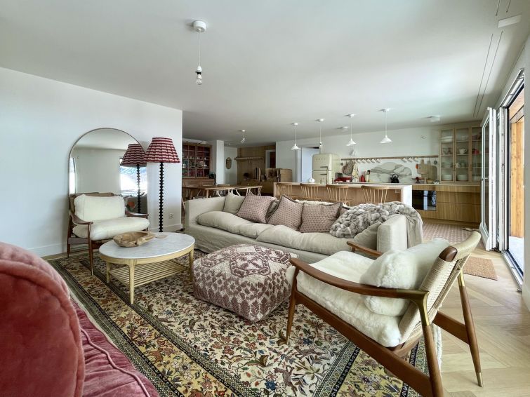 110 m2. More information by the provider: Designed by award winning British architect and designer, Claire Hart, Sonnenhof-Juliet is an apartment that sleeps 4+2 in the centre of the idyllic mountain village of Saas-Fee. Car free, with ski to locker set up this apartment ticks all the boxes, family friendly, level access, luxury high-end interior with eco friendly design.