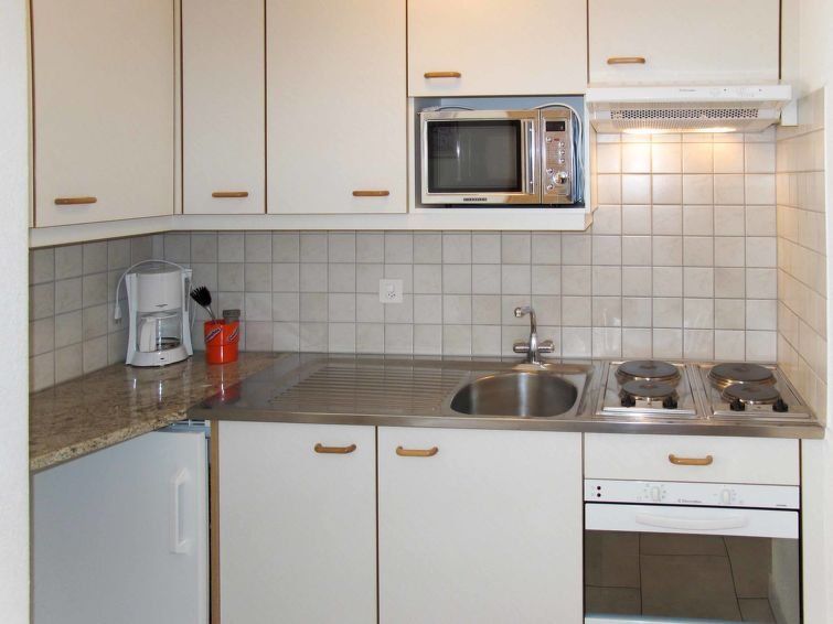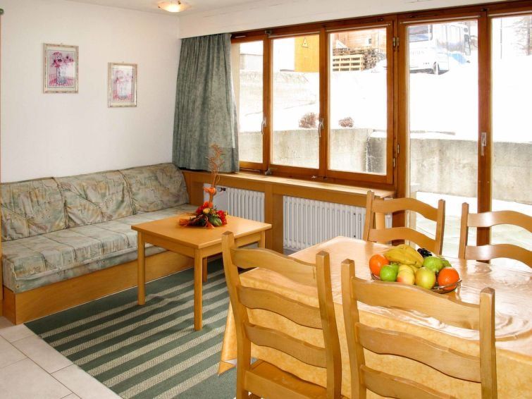 6-room apartment 96 m2, on the ground floor. Cosy furnishings: living/dining room with 1 sofabed, dining table and satellite TV (flat screen), radio and DVD. Exit to the terrace. Living/dining room with 1 sofabed and satellite TV (flat screen), radio and DVD. Exit to the terrace. 2 double bedrooms, each room with shower/WC.
