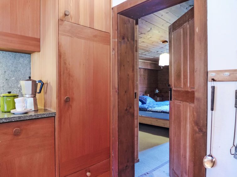 "Zumoberhaus", 4-room apartment 120 m2 on 2 levels, on the upper floor. Partly with sloping ceilings, partly renovated in 2020, very rustic and cosy furnishings: ceiling height 180 - 200 cm, Low door height 170 cm. Large living room with tiled stove. 1 room with 1 double bed (2 x 90 cm, length 200 cm).
