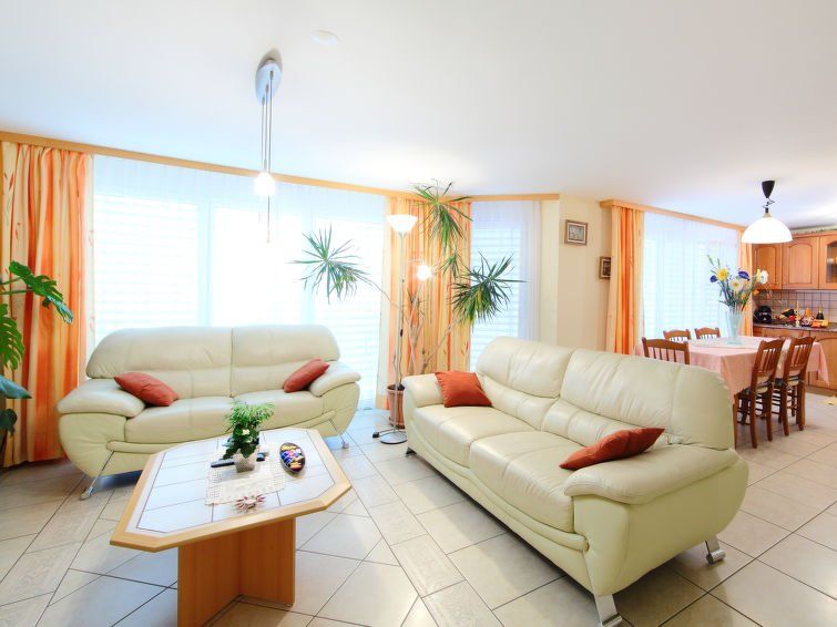Appropriately furnished, very spacious apartment. Extremely quiet house/apartment. Conveniently located right on the Vispa (river/stream). Direction heliport in the Wiesti part. Local bus station directly opposite the apartment, ideal for families with 3 - 4 children. Kitchen practical and well equipped. Very spacious bathroom/bathtub, toilet and 2nd toilet, shower. All mattresses rather soft, but that's a matter of opinion.