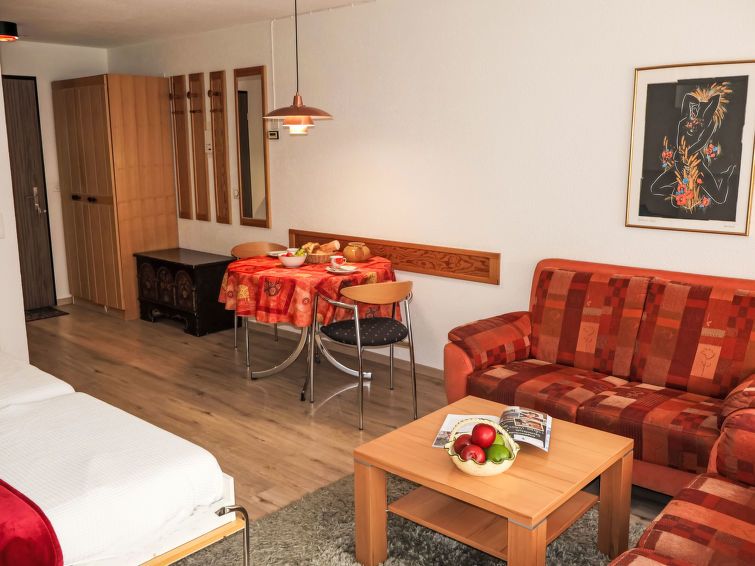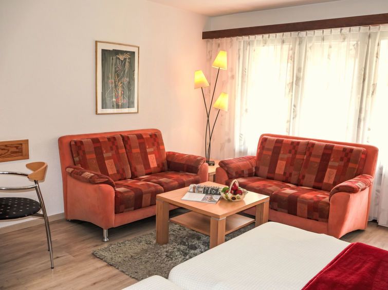 "Pasadena 6", 1-room apartment 25 m2 on 2nd floor. Bright, partly renovated, tasteful and cosy furnishings: living/sleeping room with 2 fold-away beds (90 cm, length 200 cm), dining table and digital TV. Exit to the balcony. Kitchen in the entrance (oven, dishwasher, 4 ceramic glass hob hotplates, toaster, kettle, freezer, electric coffee machine).
