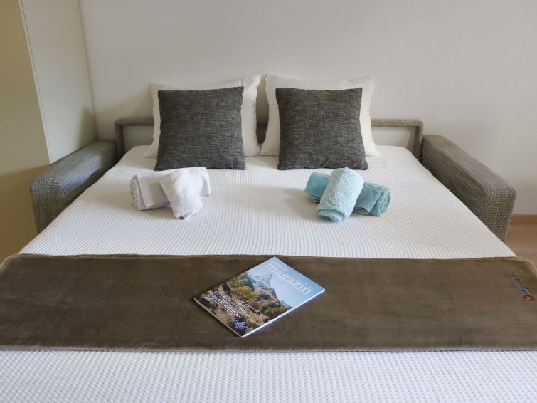 We stayed at this apartment for 3 nights in September 2025 and we loved it! The view of Matterhorn from our balcony is awesome!! Apartment is big enough for 2 people. It can accommodate 3 people. Kitchen is well equipped. Adding a microwave would be a benefit. Bed is pull out sofa-bed but very comfortable. Overall, we would book it again.