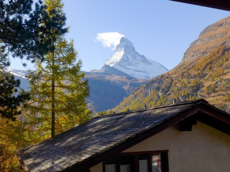 We spent almost two weeks at the property. The view of the Matterhorn is simply fantastic! The apartment is close to the center, but you have to be a bit sporty (walking uphill). The lift saves you a few steps at the end. Environment is very quiet - we could watch cats, squirrels and 2x even a deer directly from the balcony. Good wifi. A bit dark, not so new anymore (but clean) and generally very well heated - but that didn't bother us at all.