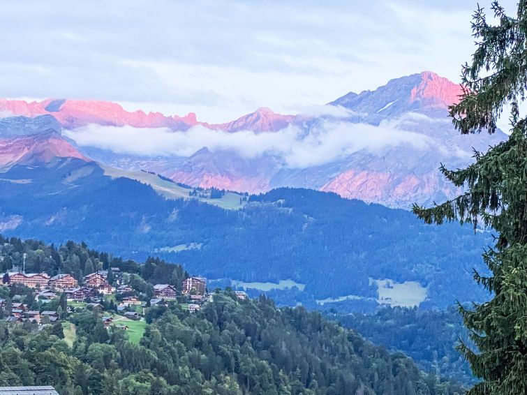 "Chaperon Rouge B5", 3-room apartment 65 m2 on 1st floor, south facing position. Practical and cosy furnishings: living/dining room with open-hearth fireplace, dining table and TV. Exit to the balcony, south facing position. 1 room with 1 pull-out bed (2 x 90 cm, length 190 cm). 1 room with 2 beds (90 cm, length 200 cm), bath/WC.
