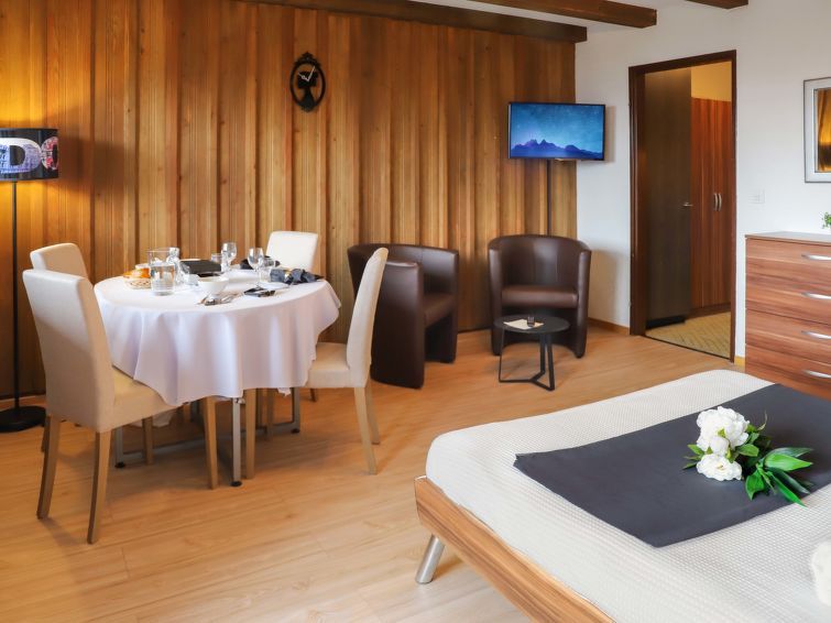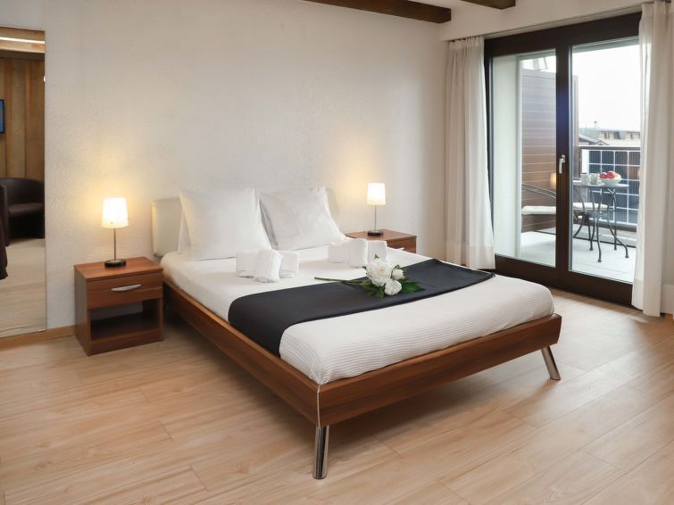 "Gamat 30", 1-room apartment 40 m2 on 2nd floor, south facing position. Practical furnishings: living/sleeping room with 1 french bed (160 cm, length 200 cm), TV (flat screen). Exit to the balcony. Kitchen in the entrance (2 hot plates, mini-oven, toaster, kettle, microwave, electric coffee machine, raclette grill, fondue Set (cheese)).