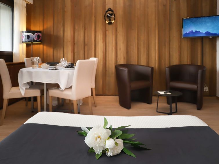 Ski week with my son. Small apartment very well located at the foot of a shuttle stop leading to the gondola. When the snow allows it, return on skis almost to the foot of the building. It is important to note that in a single-parent family, you must agree to sleep with your child in the same bed. Building from the 80s, the interior is period. In addition to kitchen utensils, a microwave would be welcome.