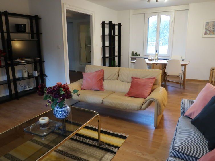 Quiet apartment on the 1st floor of an old house in a private park with large trees, has charm through a combination of old and new and a fireplace - located just outside the village center - very nice and helpful landlords - 5 minutes to the bus and train station Bex Ponst-Neuf, however only hourly journeys to and from the SBB station Bex