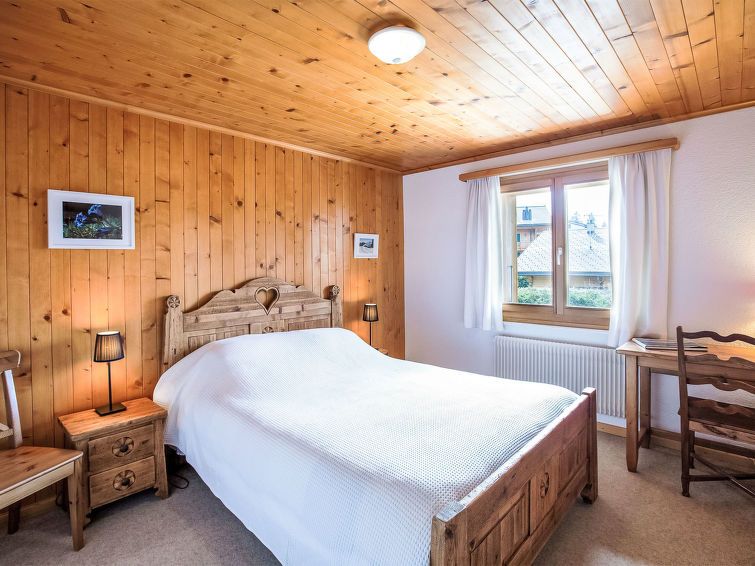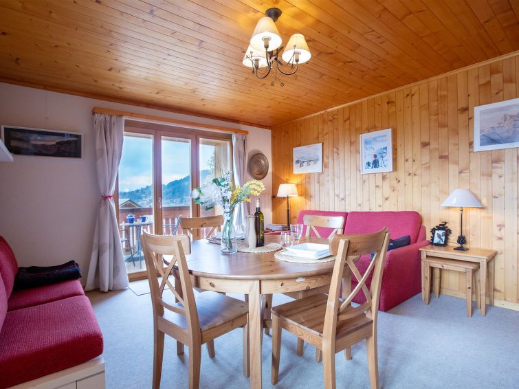 "Montagnards 12", 2-room apartment on 2nd floor. Practical and comfortable furnishings: living/dining room with dining table. Exit to the balcony, south facing position and east facing position. 1 room with 1 french bed (1 x 160 cm). Kitchen (oven, dishwasher, 4 gas rings, toaster, kettle, microwave, electric coffee machine, Capsules for coffee machine (Nespresso Vertuo) extra, raclette grill, fondue Set (cheese)).