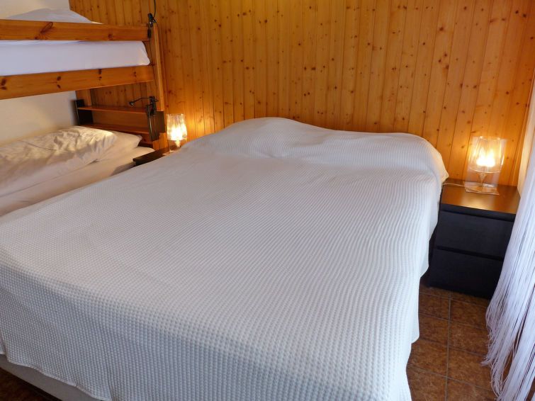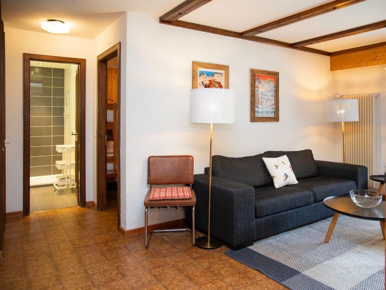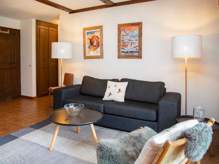 Opale 4 is a comfortable apartment, approximately 50m2, living room with fitted kitchen and sofa bed, double bedroom + bunk beds, numerous cupboards, good general condition, on the ground floor of a small building, southern exposure with terrace, very well located :100m from the train access to the slopes, 500m from the children's slopes, toboggans and games, near the center of the resort and shops.