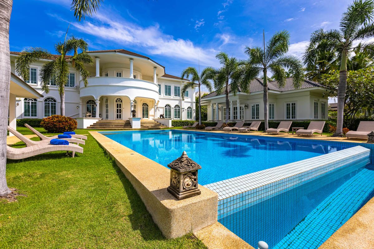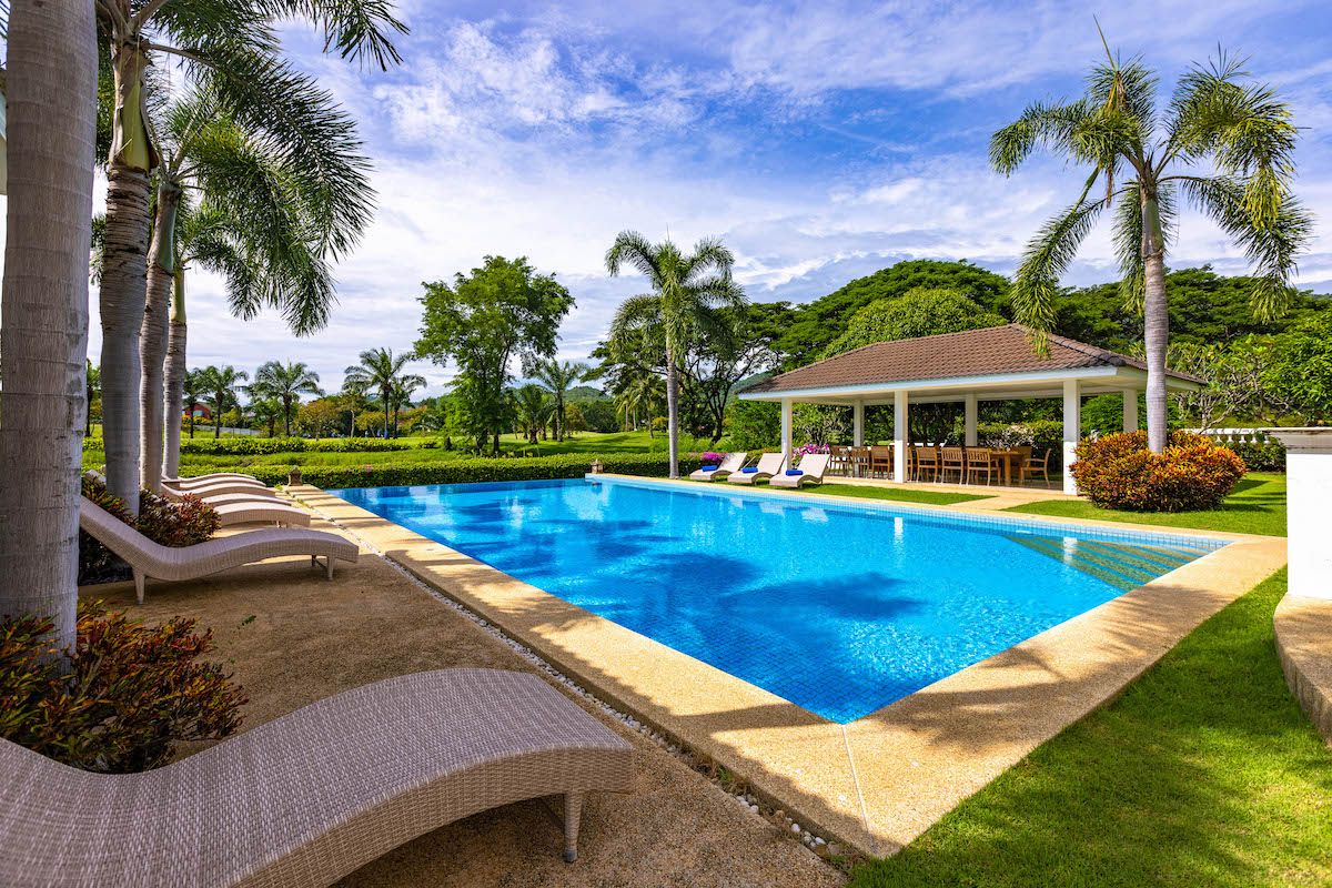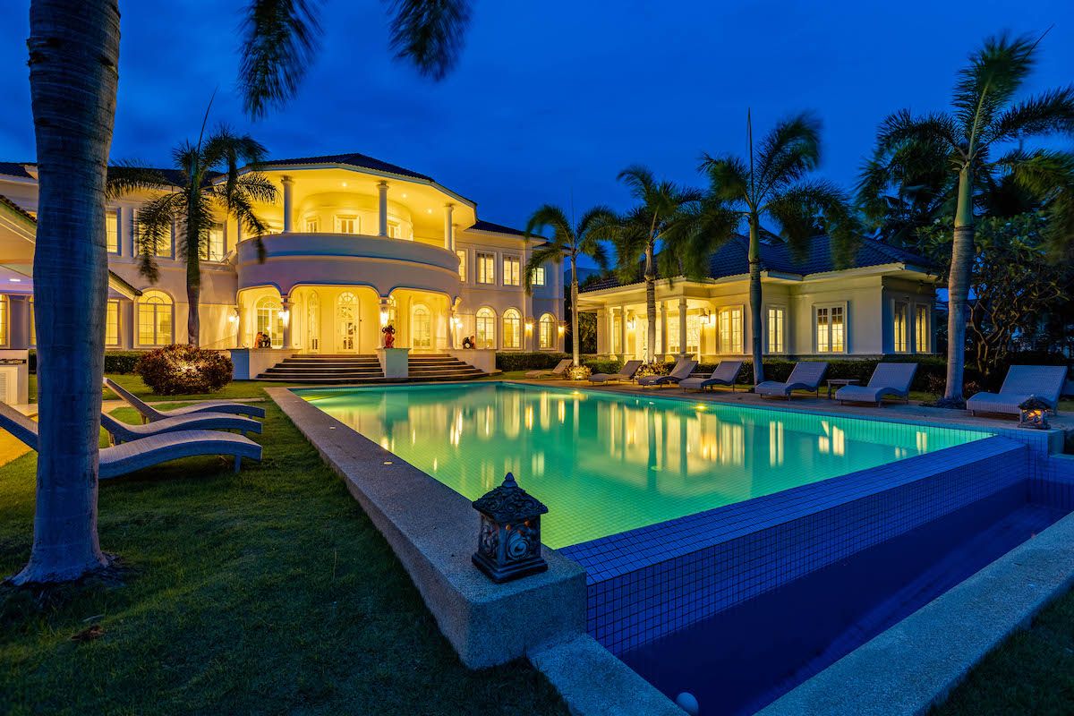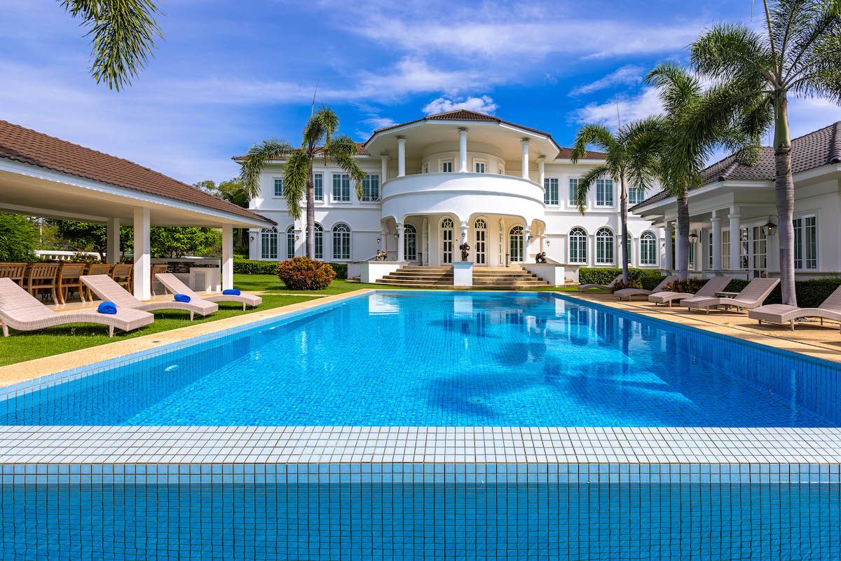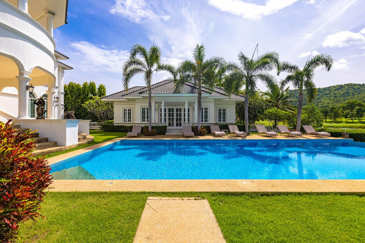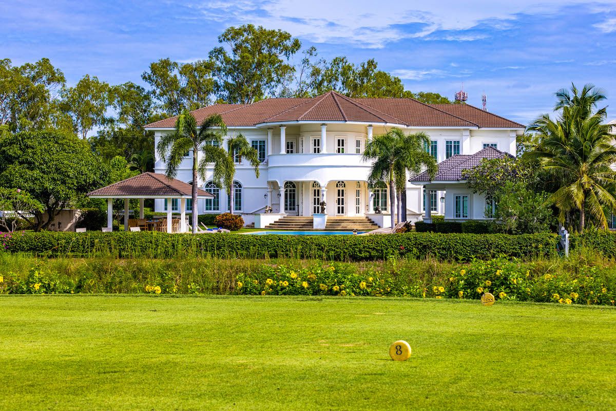 This beautiful Thai home on the grounds of a gated golf course – Palm Hills Golf Club – in Thailand's royal beach district boasts a private pool and spacious garden with views of the course. Two of the eight en-suite bedrooms are located in a separate poolside house with its own living room, ideal for guests wanting some extra privacy. We think this home is a great choice for families – for an additional fee, you can gain access to a range of resort facilities, including a sports club, and the on-site house manager can help arrange a variety of extra services from chauffeurs to private chefs.