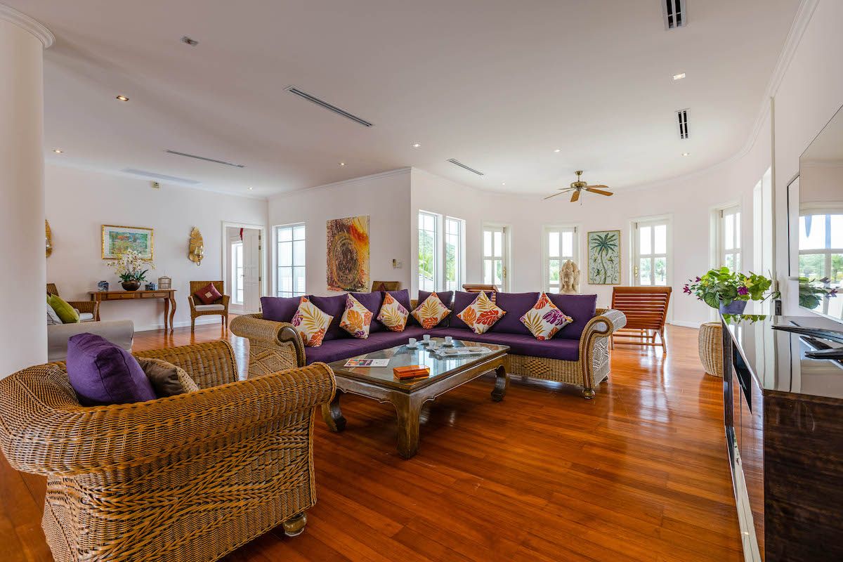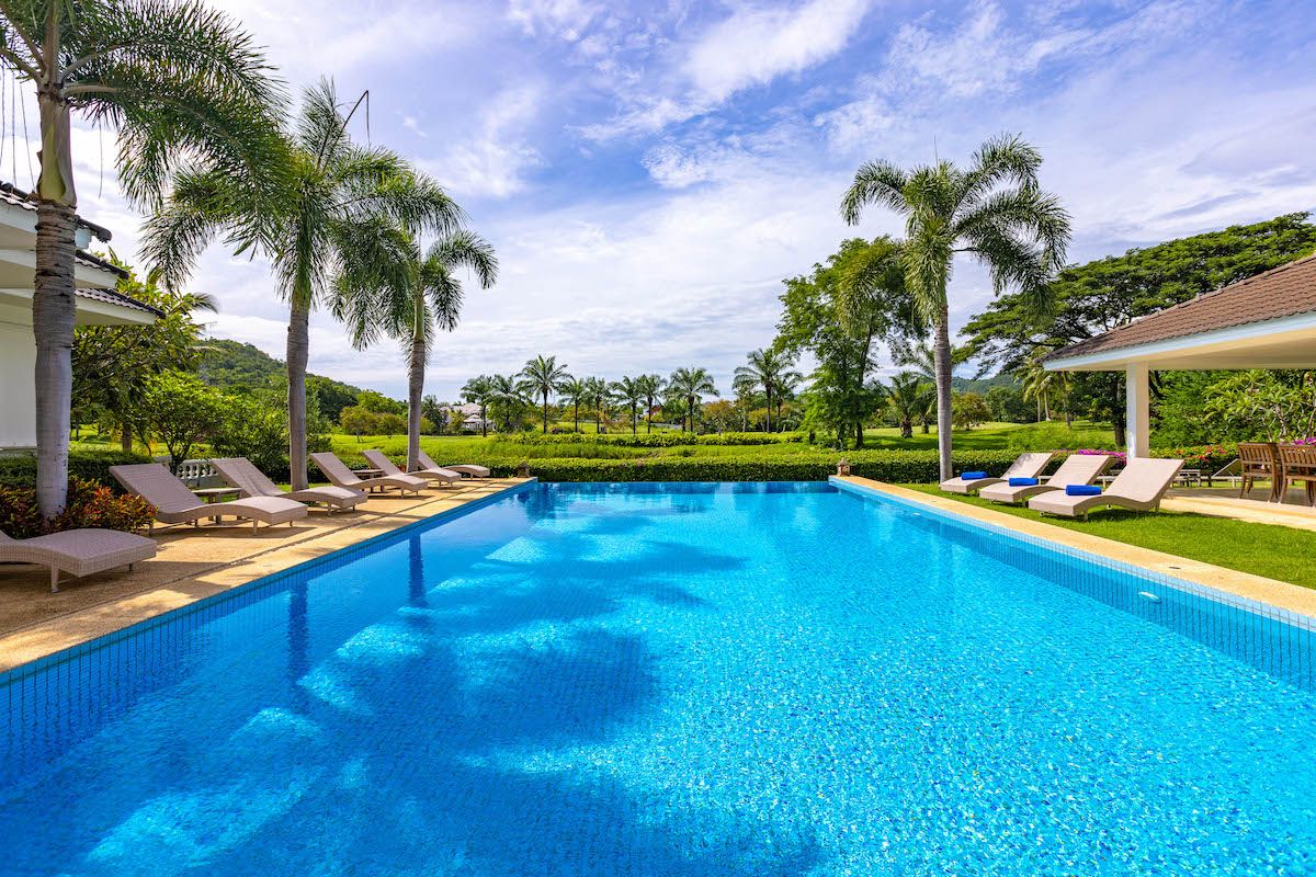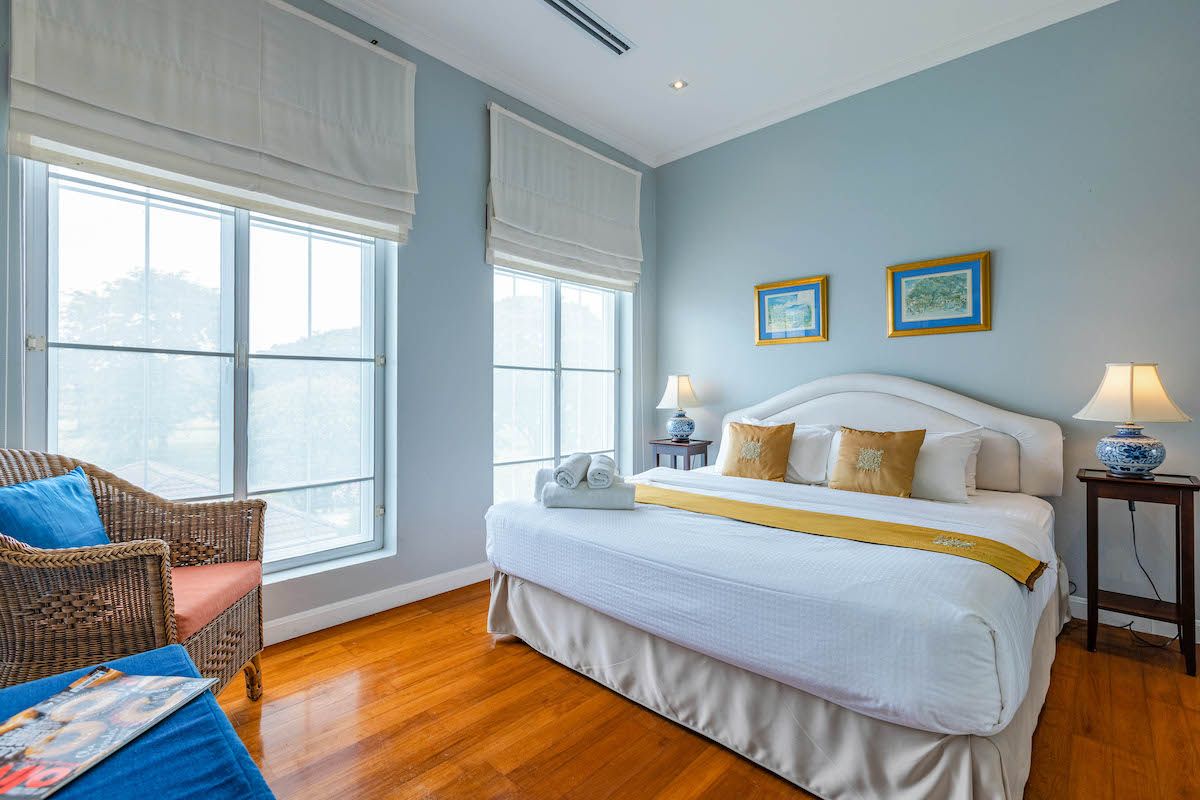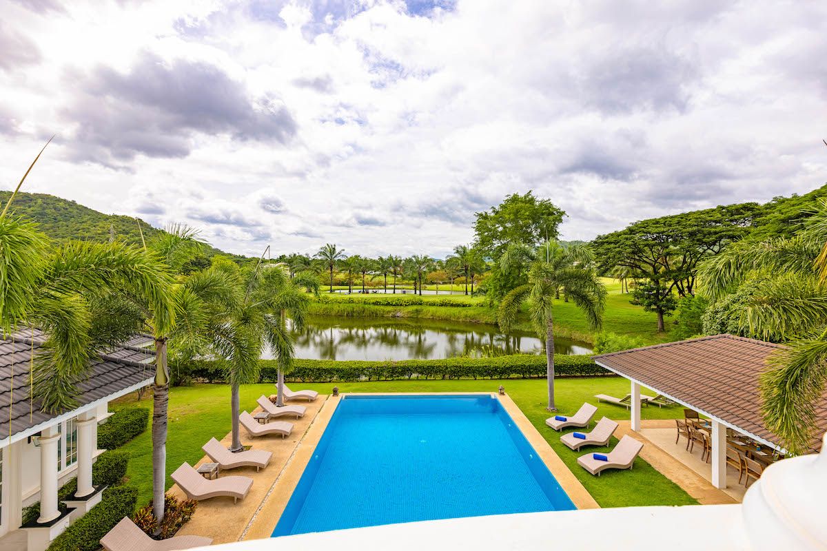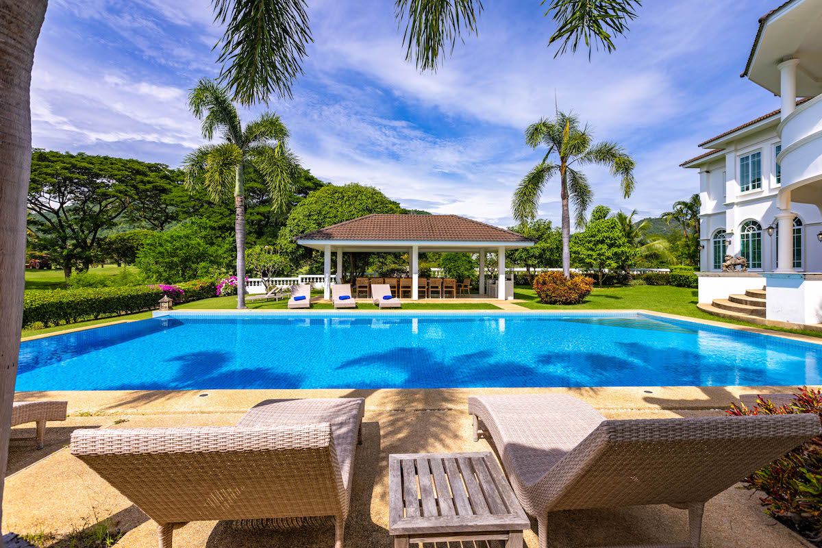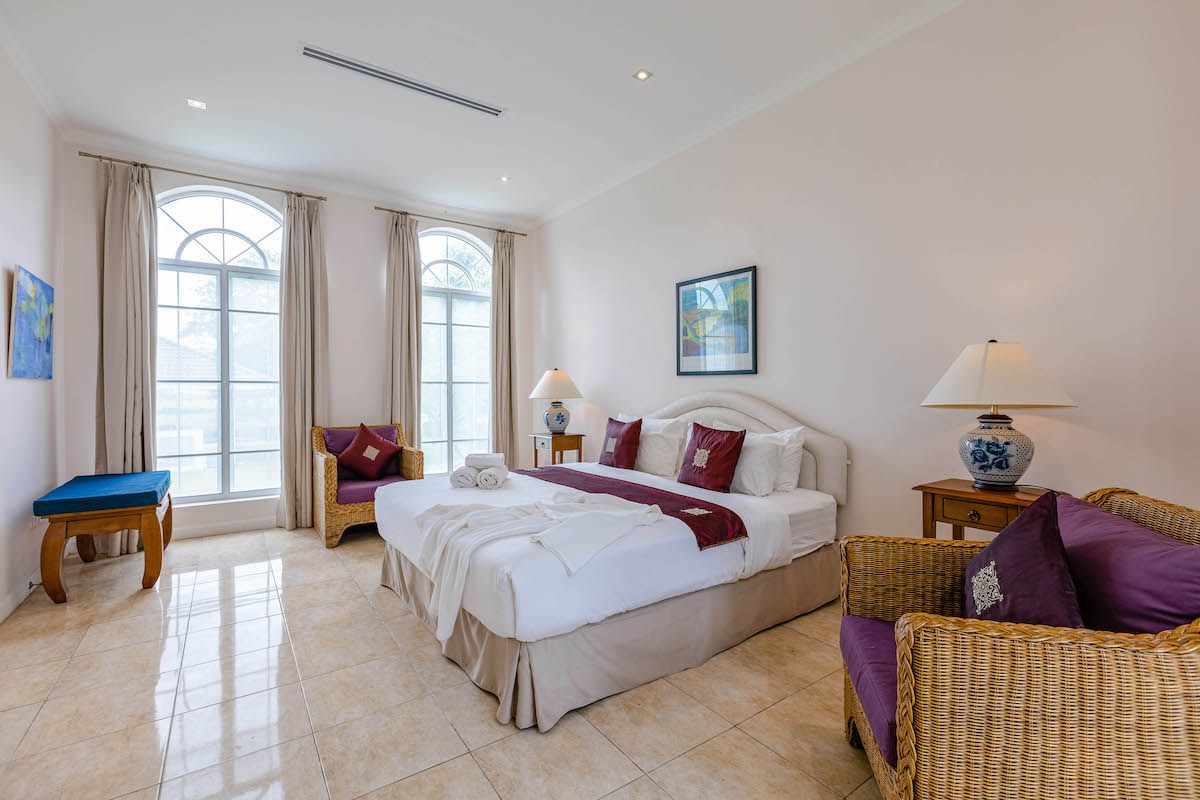 This beautiful Thai home on the grounds of a gated golf course – Palm Hills Golf Club – in Thailand's royal beach district boasts a private pool and spacious garden with views of the course. Two of the eight en-suite bedrooms are located in a separate poolside house with its own living room, ideal for guests wanting some extra privacy. We think this home is a great choice for families – for an additional fee, you can gain access to a range of resort facilities, including a sports club, and the on-site house manager can help arrange a variety of extra services from chauffeurs to private chefs.