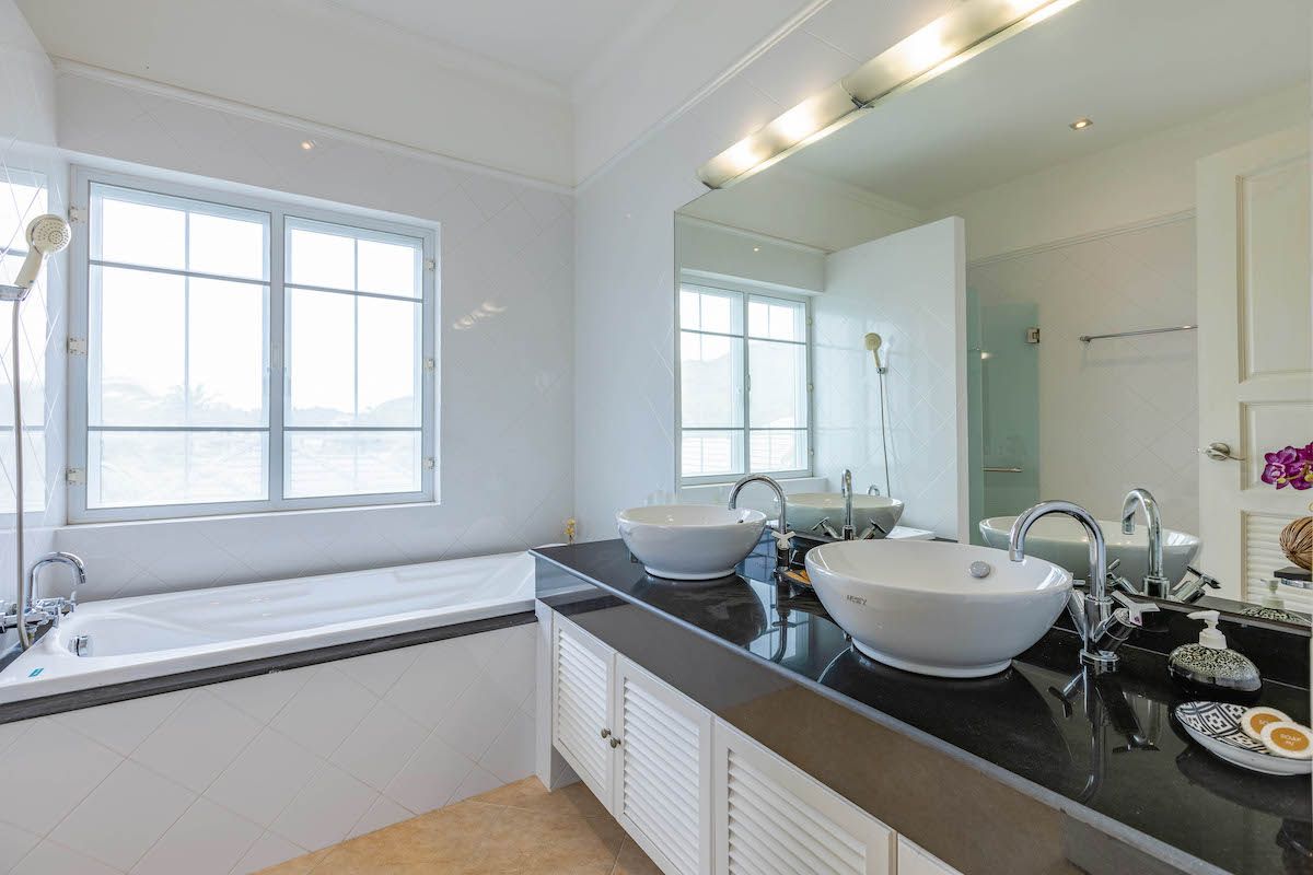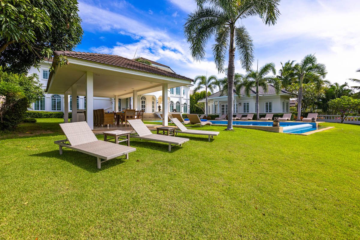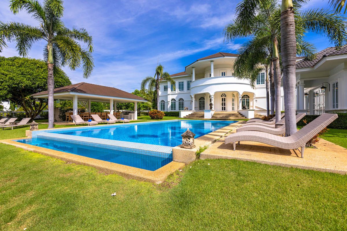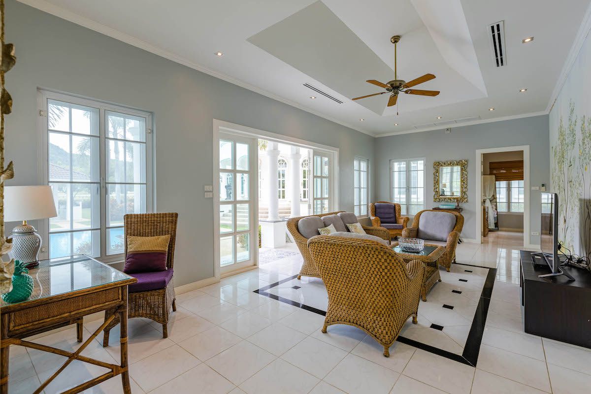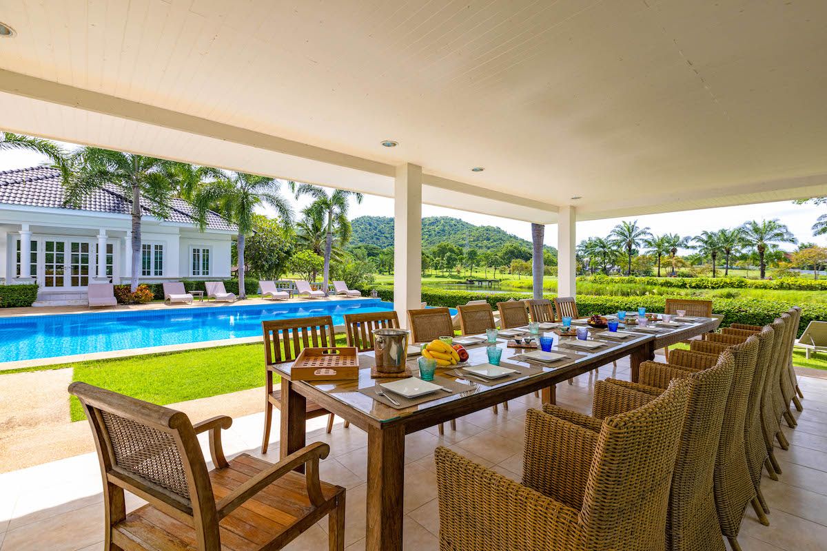 This beautiful Thai home on the grounds of a gated golf course – Palm Hills Golf Club – in Thailand's royal beach district boasts a private pool and spacious garden with views of the course. Two of the eight en-suite bedrooms are located in a separate poolside house with its own living room, ideal for guests wanting some extra privacy. We think this home is a great choice for families – for an additional fee, you can gain access to a range of resort facilities, including a sports club, and the on-site house manager can help arrange a variety of extra services from chauffeurs to private chefs.
