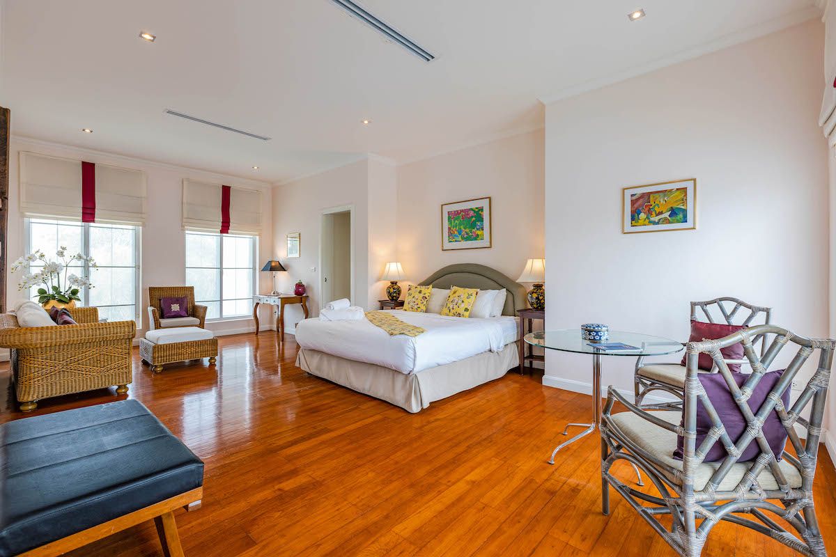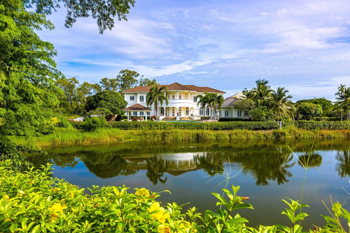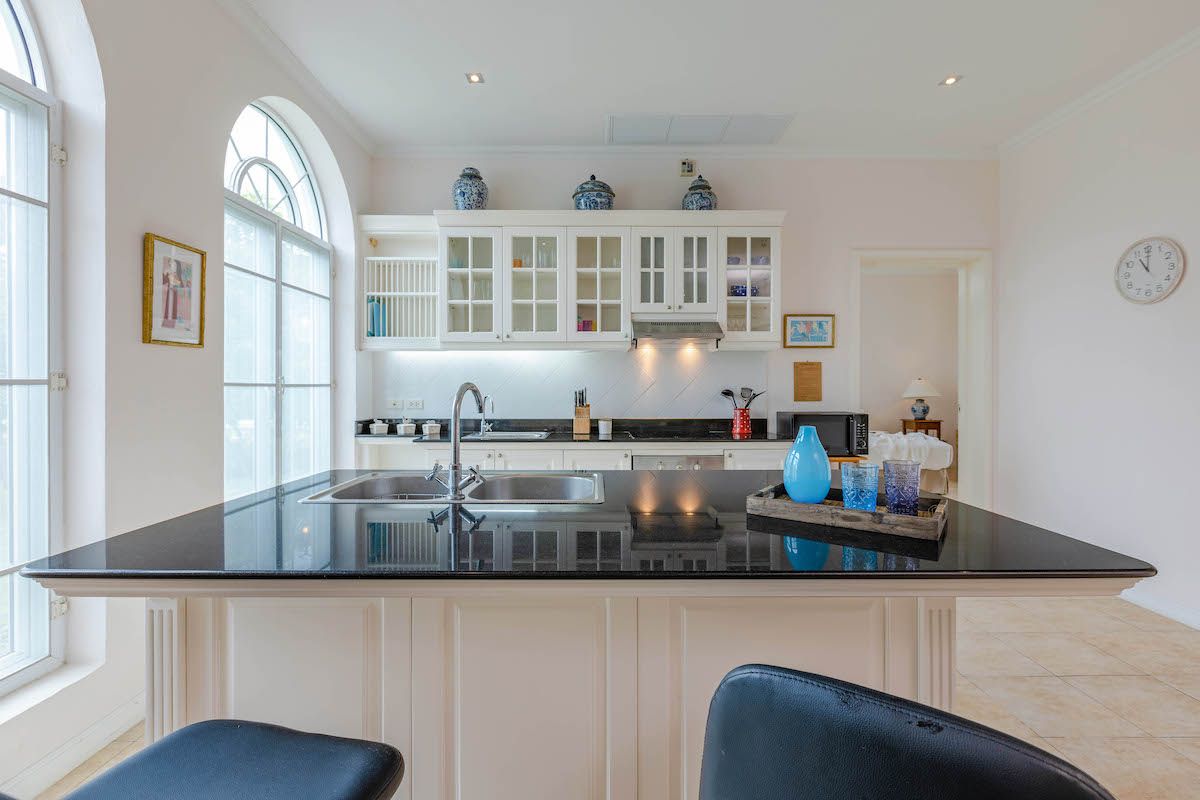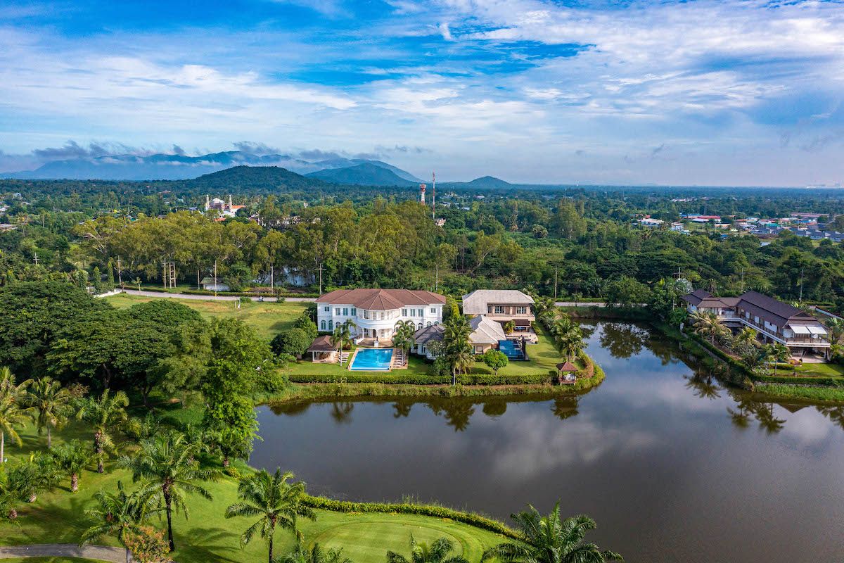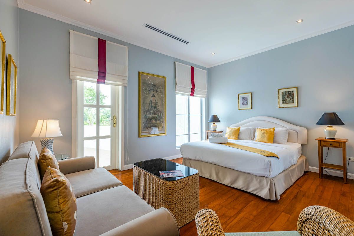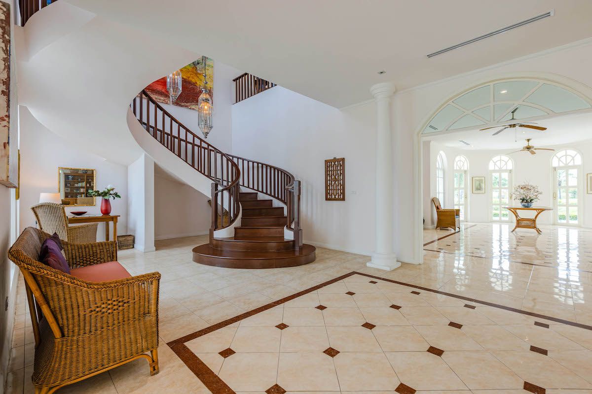 This beautiful Thai home on the grounds of a gated golf course – Palm Hills Golf Club – in Thailand's royal beach district boasts a private pool and spacious garden with views of the course. Two of the eight en-suite bedrooms are located in a separate poolside house with its own living room, ideal for guests wanting some extra privacy. We think this home is a great choice for families – for an additional fee, you can gain access to a range of resort facilities, including a sports club, and the on-site house manager can help arrange a variety of extra services from chauffeurs to private chefs.