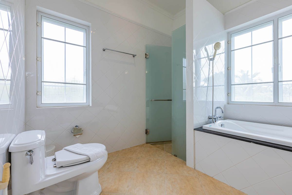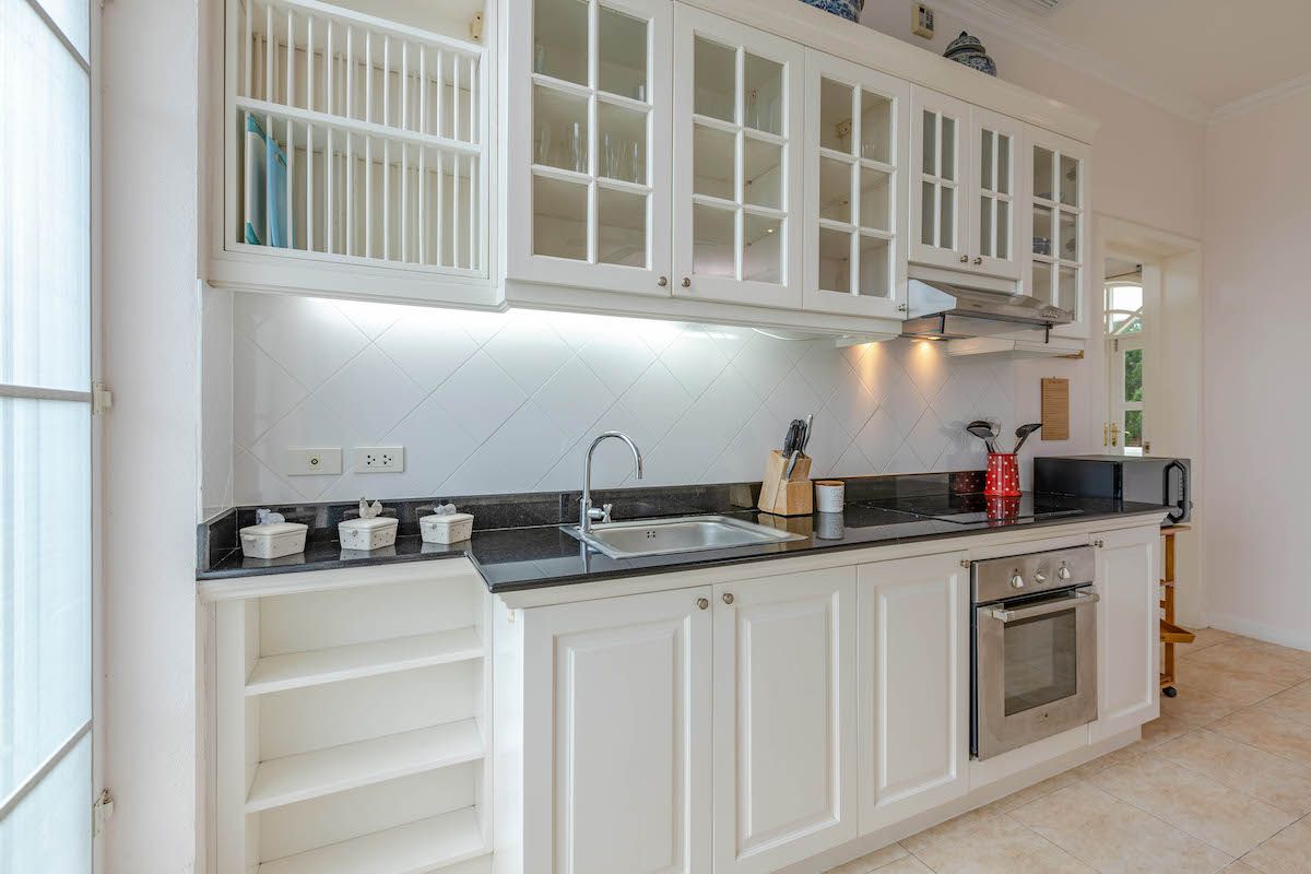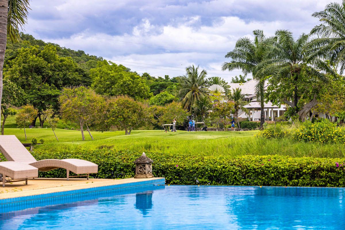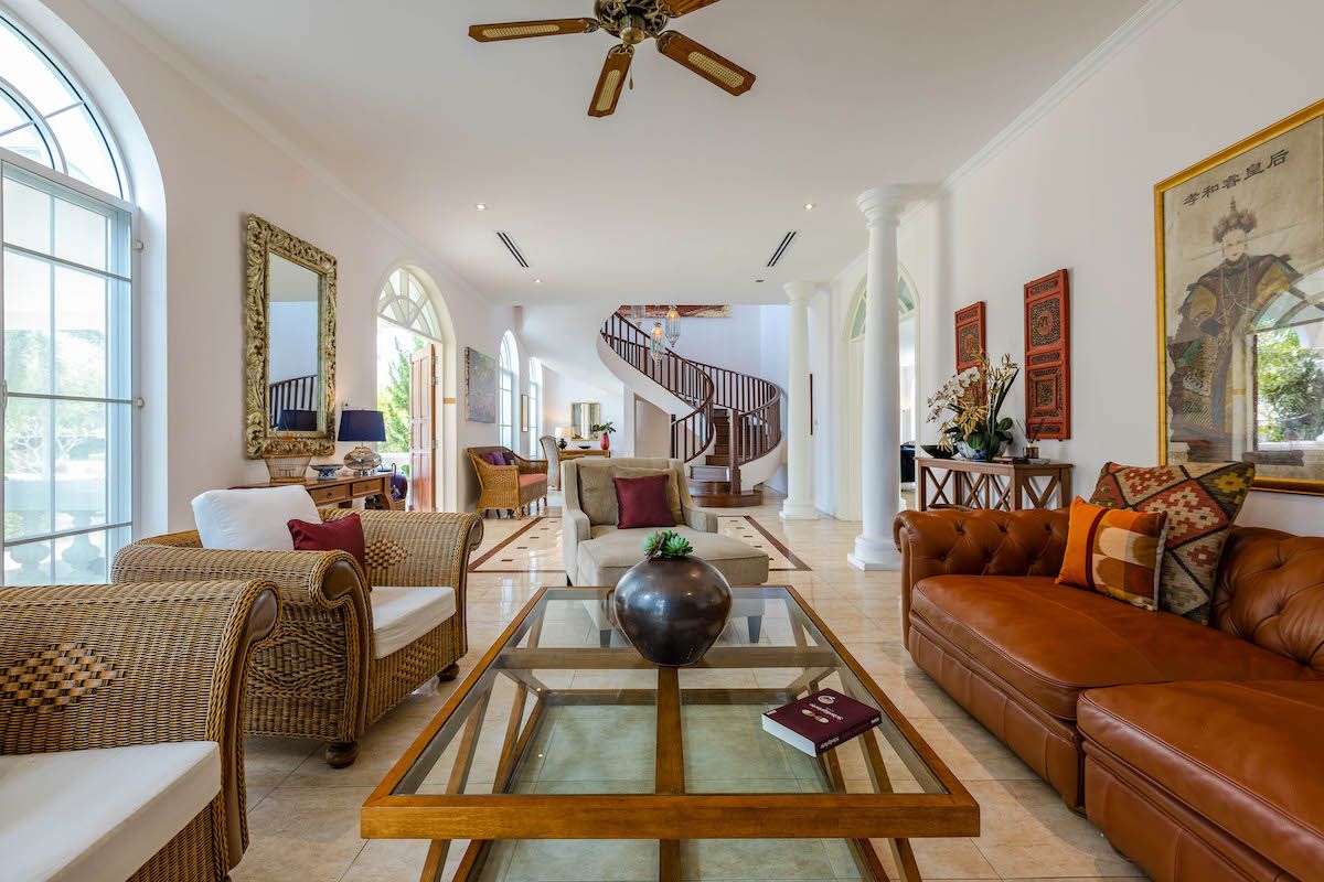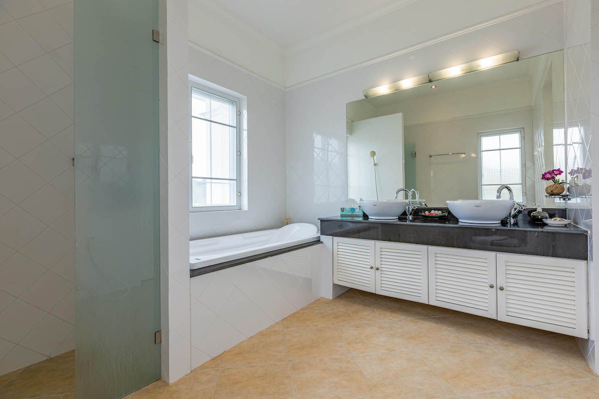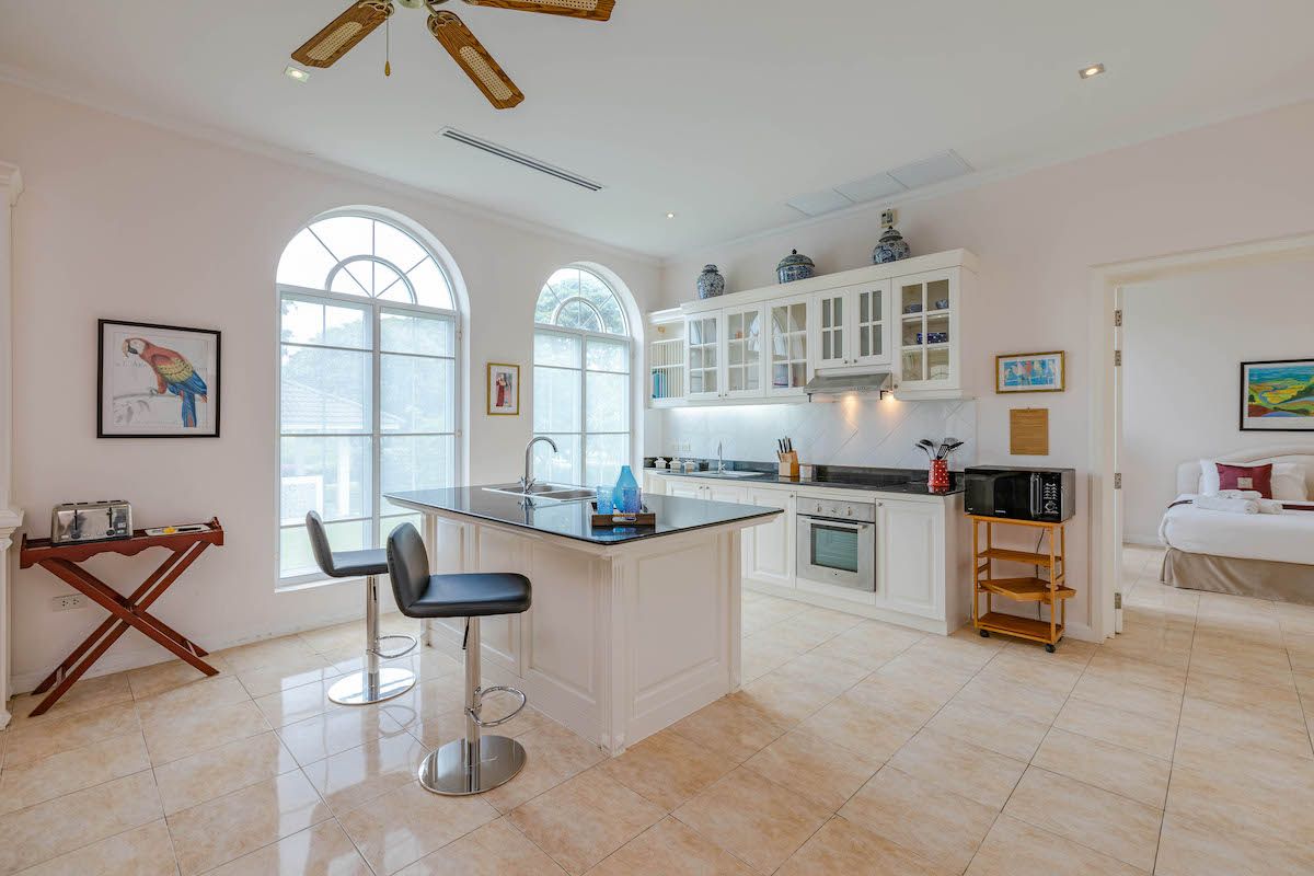 This beautiful Thai home on the grounds of a gated golf course – Palm Hills Golf Club – in Thailand's royal beach district boasts a private pool and spacious garden with views of the course. Two of the eight en-suite bedrooms are located in a separate poolside house with its own living room, ideal for guests wanting some extra privacy. We think this home is a great choice for families – for an additional fee, you can gain access to a range of resort facilities, including a sports club, and the on-site house manager can help arrange a variety of extra services from chauffeurs to private chefs.