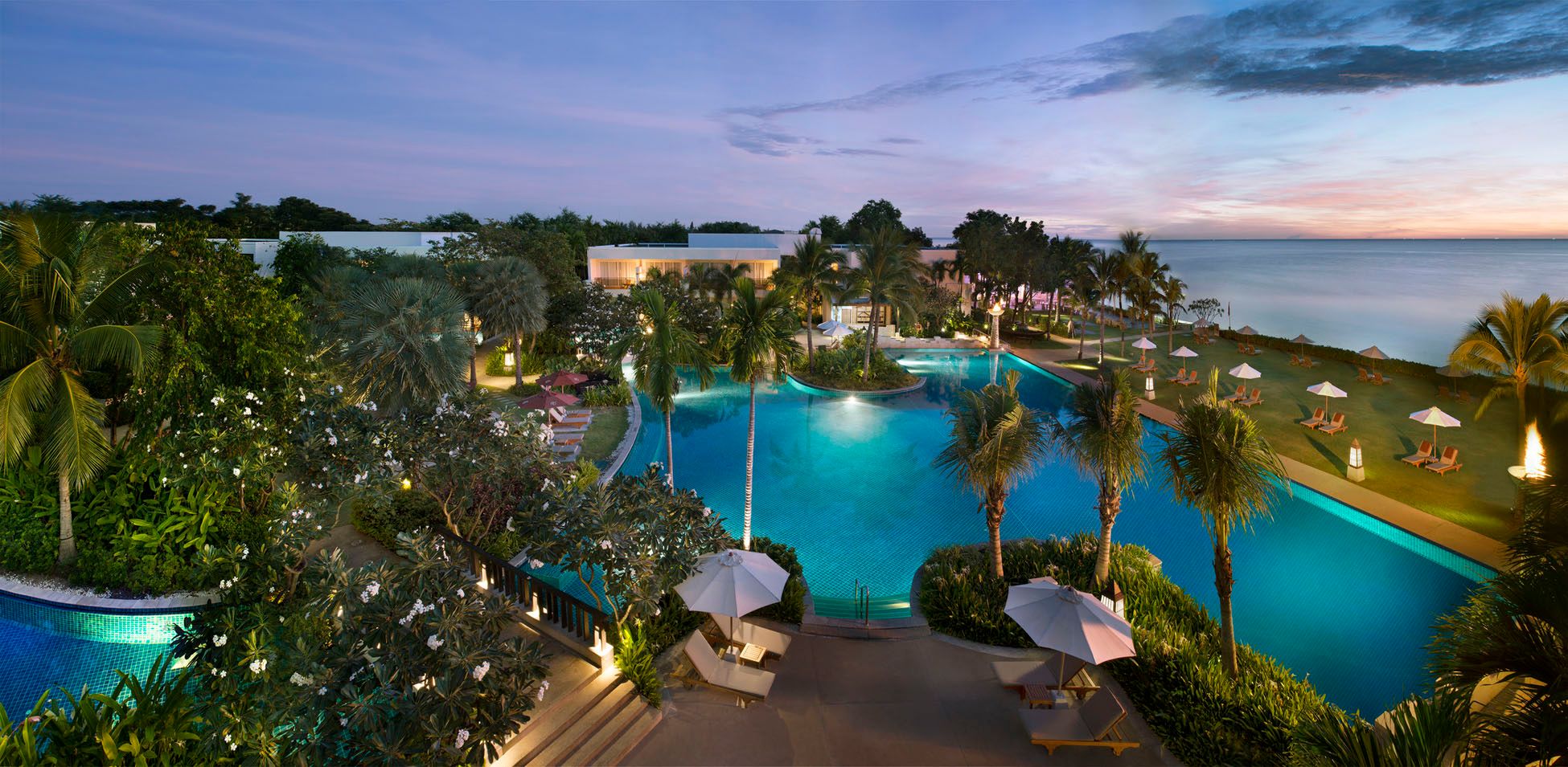 This tranquil Thai villa, housed inside a luxury beach resort, is perfect for slow, relaxing holidays. It comes with its own garden and terrace area with outside seating, and is situated directly in front of the shared lagoon-style pool. You'll also get direct access to the beach, and for some added luxury, you can pay to use the resort's amenities, including the spa, kids club, and gym. With high ceilings, an open-plan kitchen and diner, and ensuite bathrooms, there's plenty of space for the whole family. The resort is just a fifteen-minute drive or taxi ride to Hua Hin town centre, where you'll find supermarkets, restaurants, authentic markets and theme parks.