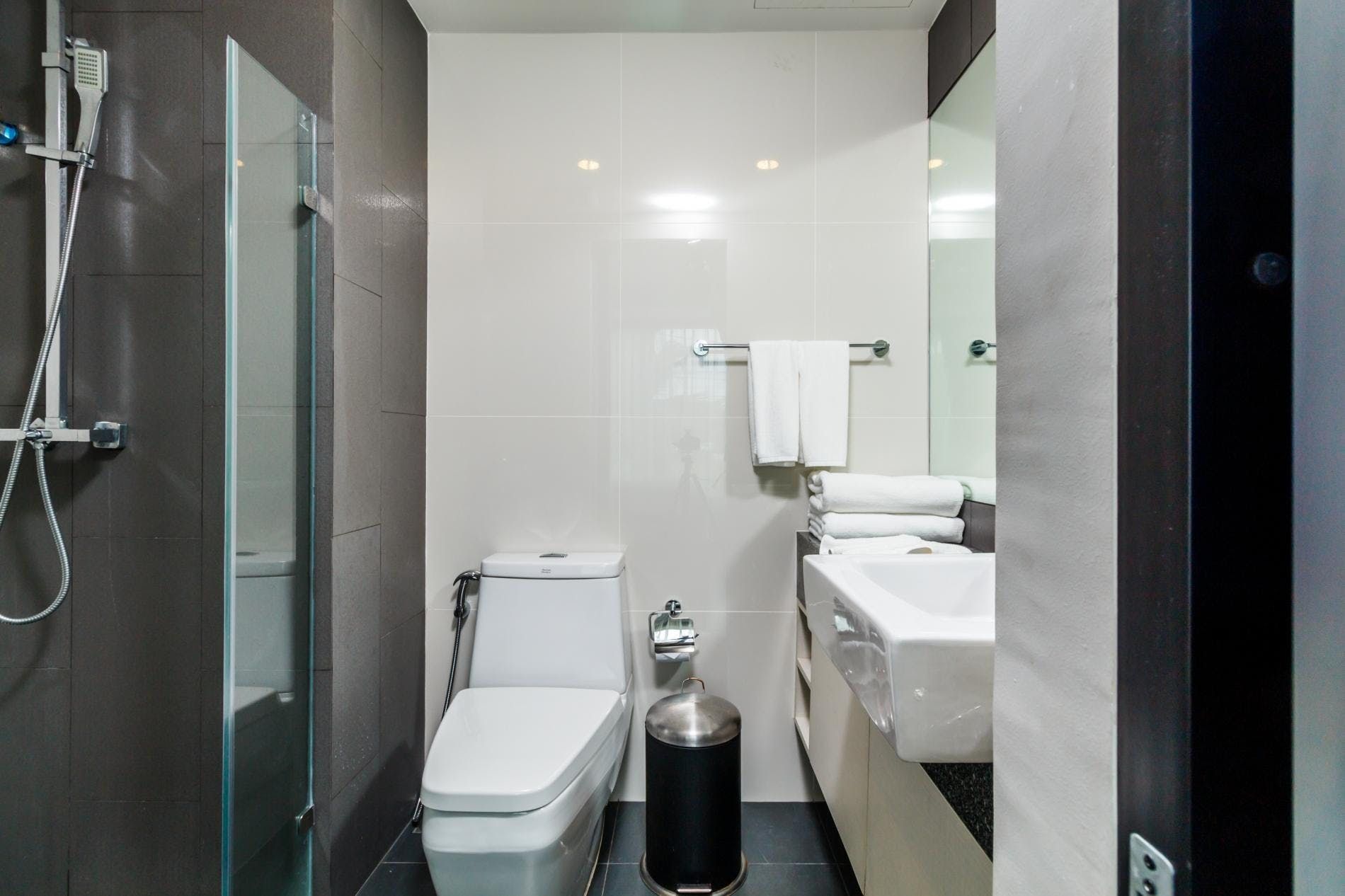 This apartment is kitted out with all the amenities you could wish for, lovingly hand–crafted from Chiang Mai. There’s also a large, flat–screen TV in the lounge, allowing you to catch up on your best–loved shows on those quieter evenings, and, if you’re into your fitness, a shared gym available to use for no additional charge. In a nutshell, there’s something for everyone.