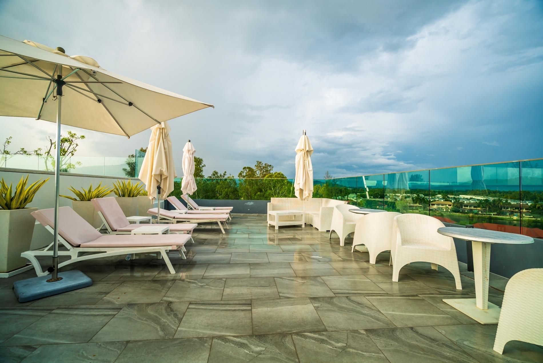 Located in the heart of Laguna, this home boasts excellent on-site amenities including a gym, and a rooftop pool and terrace. Plus, there is even a private balcony that overlooks stunning views stretching over the tops of palm trees. This balcony provides the ideal spot for breakfasts accompanied by the fresh morning breeze and green vistas. Why not also return again in the evening for a nightcap as the sun sets on this beautiful panorama?