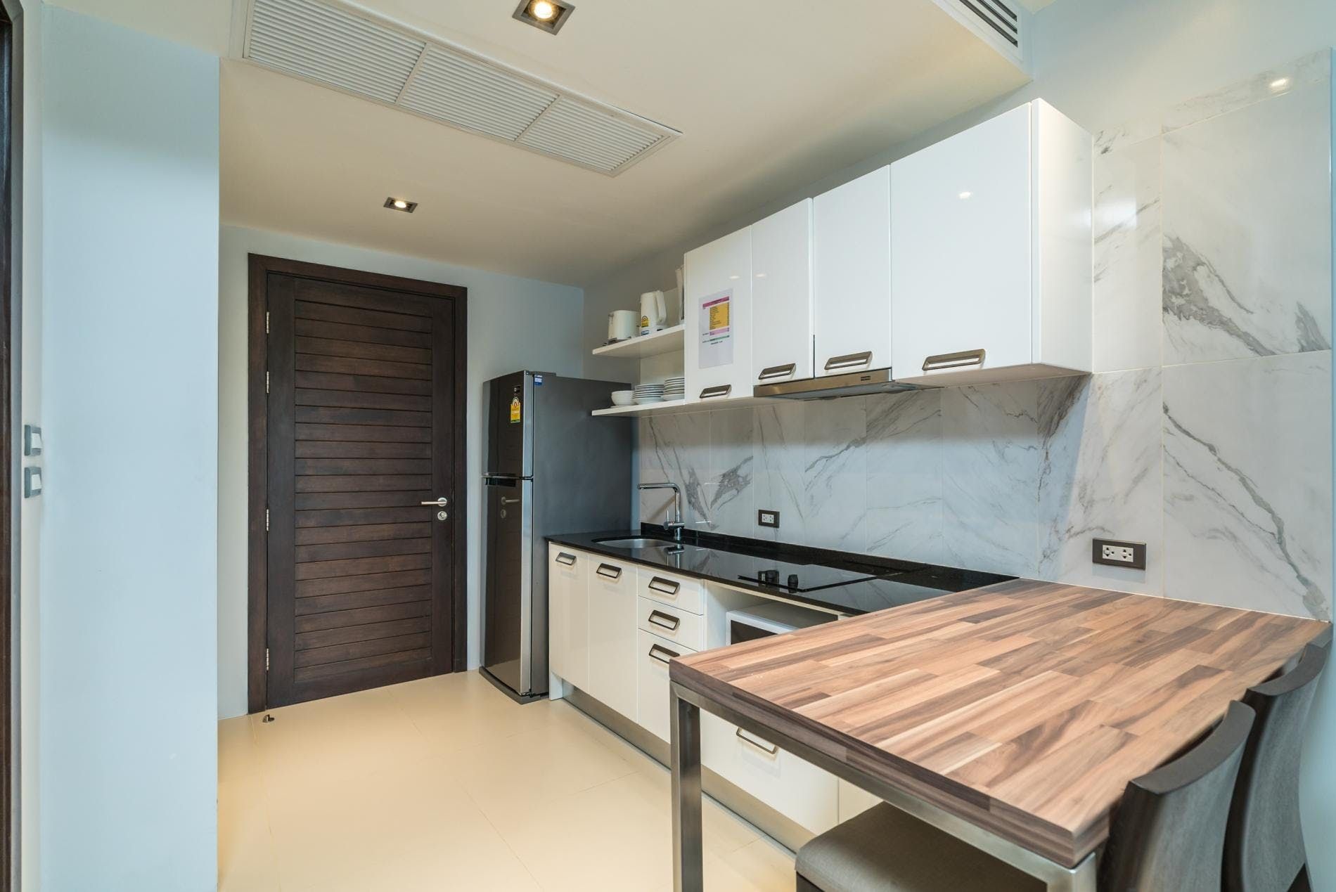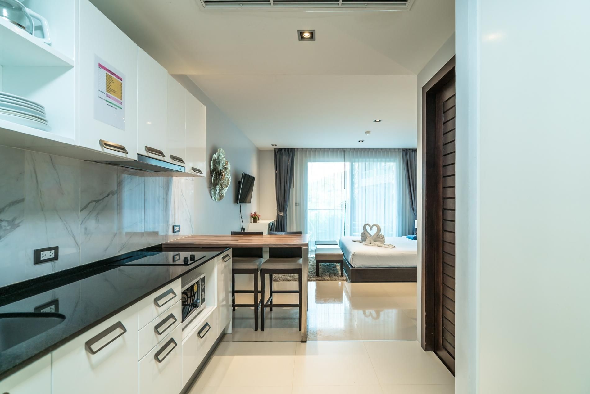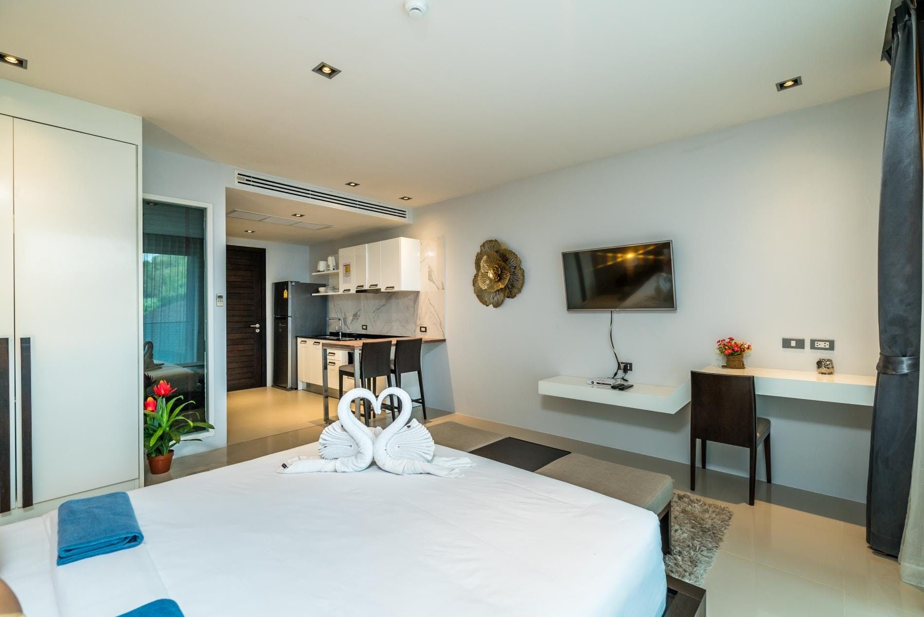 This light filled Patong pad is the perfect place from which to explore paradisal Phuket. But first things first, you’ll want to take the opportunity to make the most of all this home has to offer. Begin the day by taking your morning coffee out onto your private balcony for views of lush Thai greenery before heading down for a morning swim in the residents only infinity pool or getting your sweat on in the air-conditioned residents only gym. Hop into the large walk-in shower before whipping up something light to eat in preparation for a day at nearby Patong Beach. Simply sunbathe or if you’re feeling more adventurous try your hand at one of the many water sports on offer – parasailing and jet-skiing are the most popular choices. Alternatively, your home’s central location means that it’s very easy to live like a local and browse the area’s shops and street food markets or sample some of its many restaurants and bars.