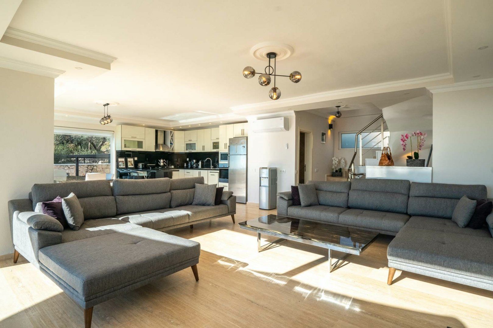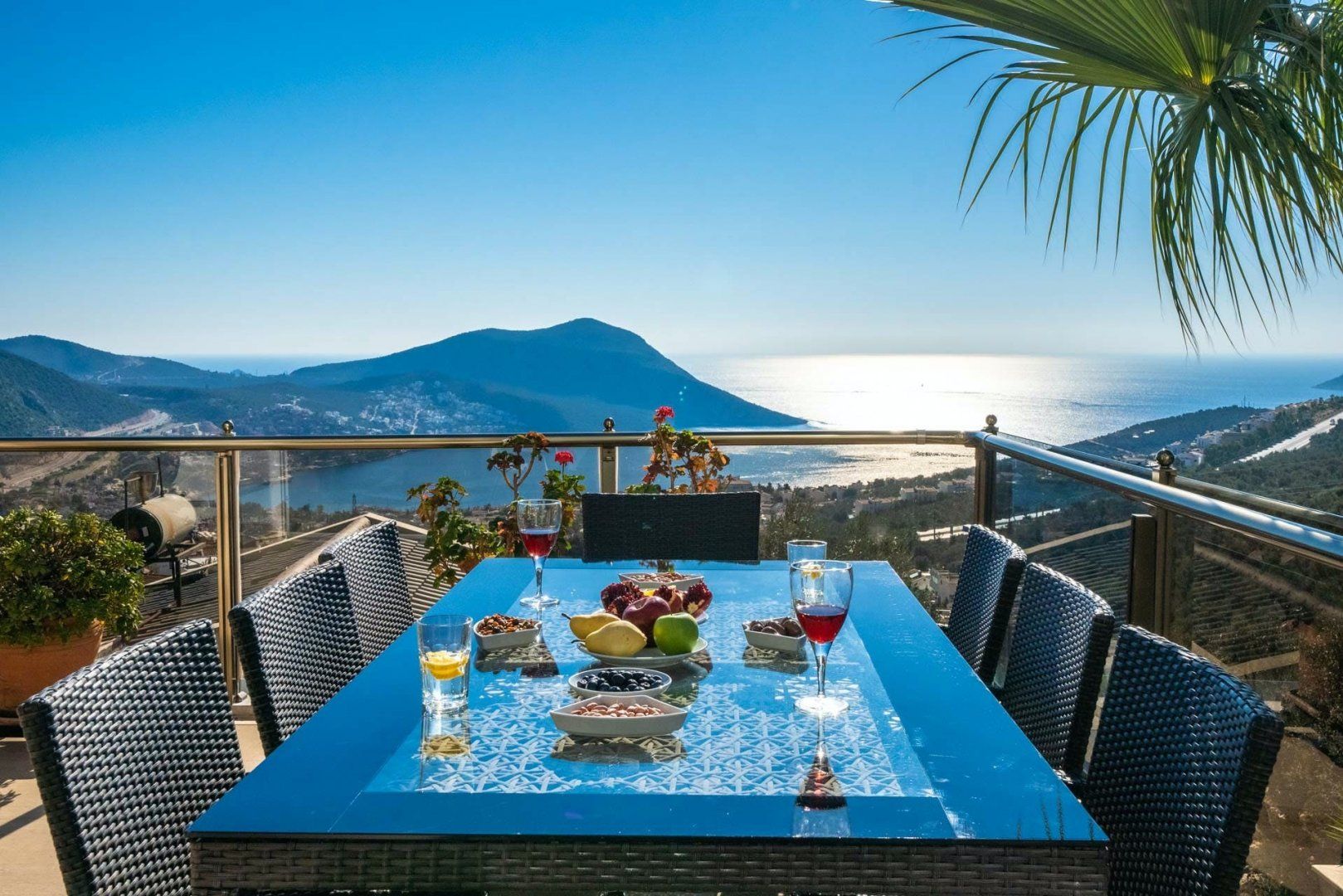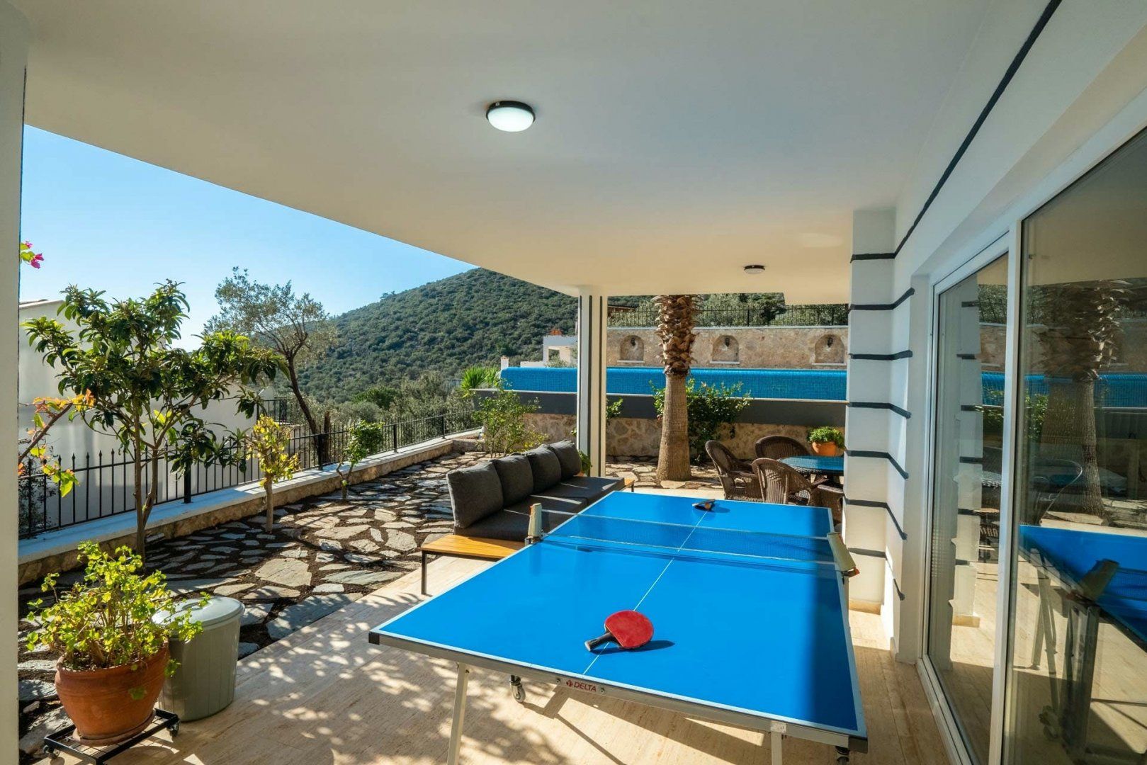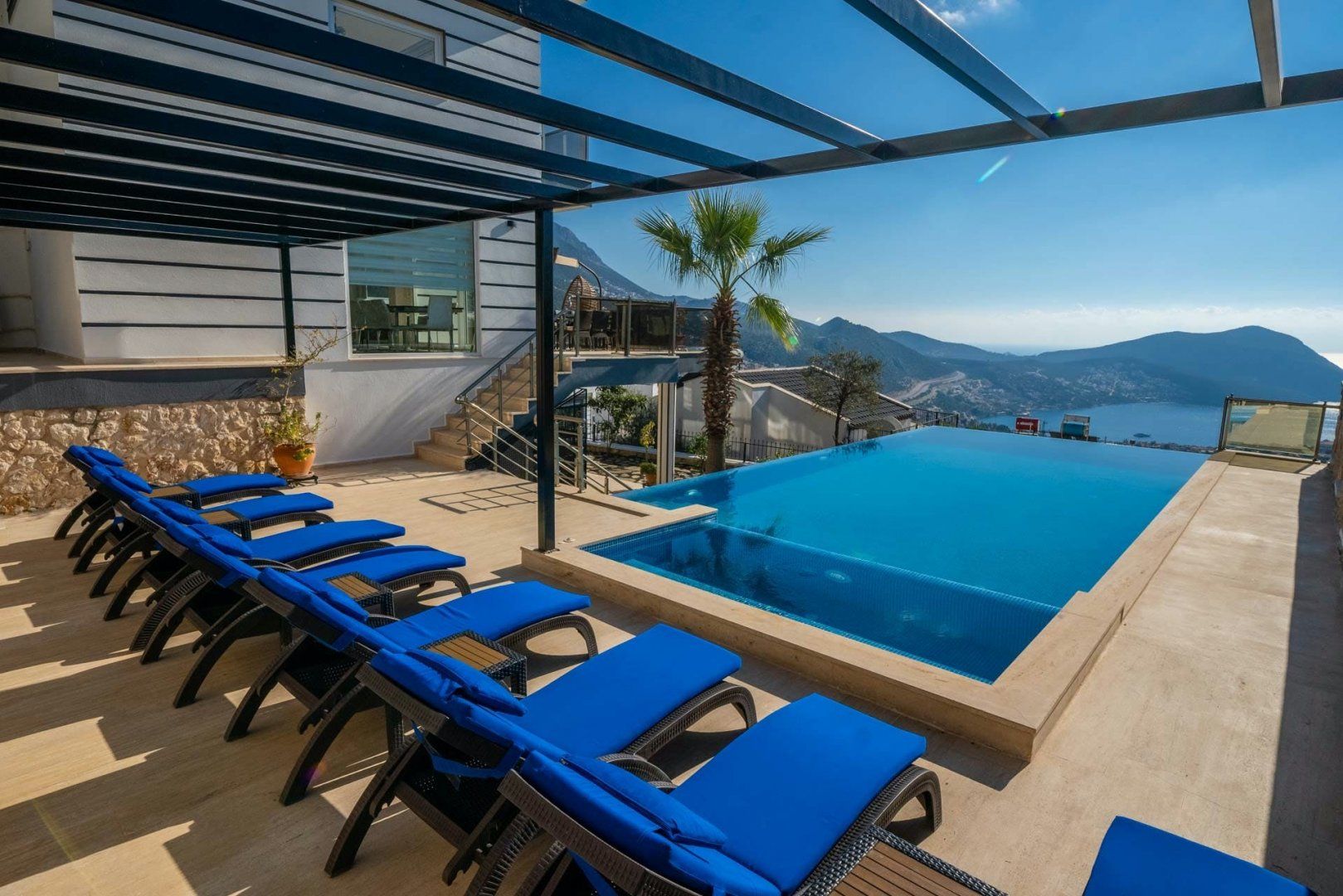 Perched high above the town of Kalkan with panoramic views over its bay and the stunning turquoise waters of the Mediterranean Sea – this spot epitomises luxurious serenity. Taking in the vistas comes easy from the infinity swimming pool, spanning terrace, south-facing main living area, and bedroom suites. And with direct access to the pool and spa from both the lower and upper terraces, you'll get to step straight from the bedrooms and into the sunshine. Meanwhile, the ping pong table, table football and games console are perfect for keeping the kids entertained. When you'd sooner go out, the restaurants, shops and beach clubs of Kalkan are found just a short drive (1.5 kilometres) down the hill.