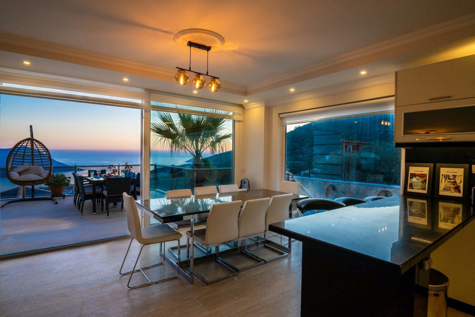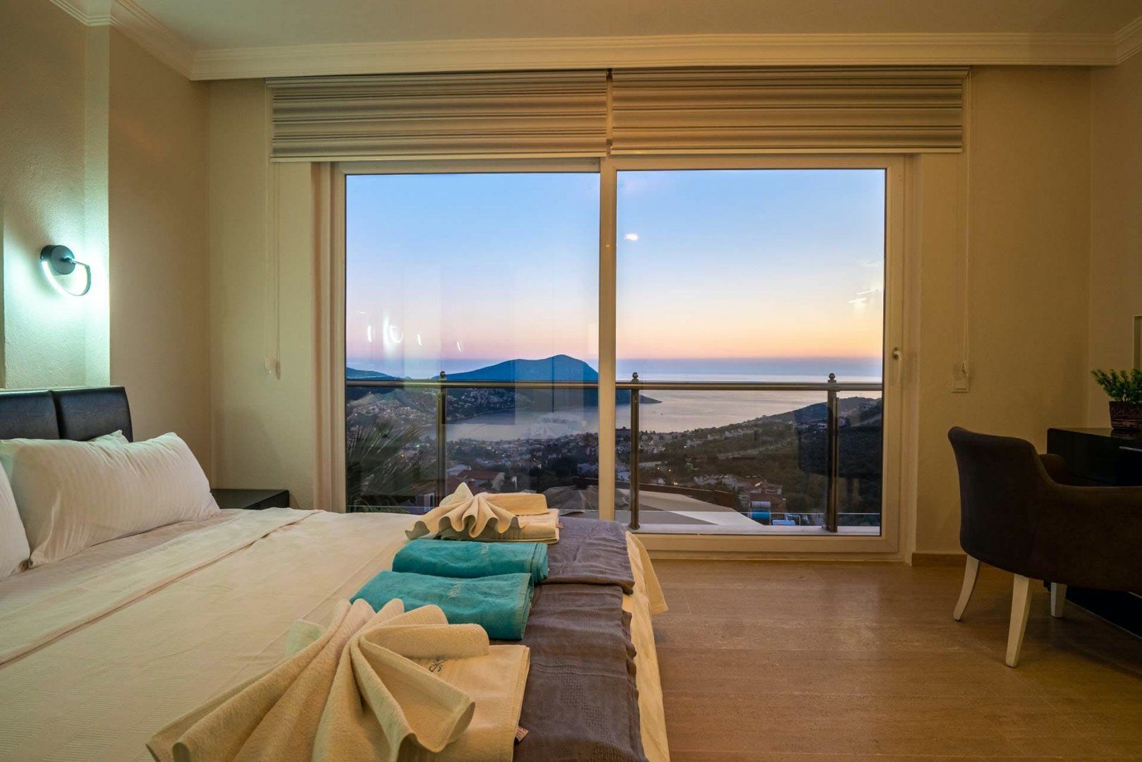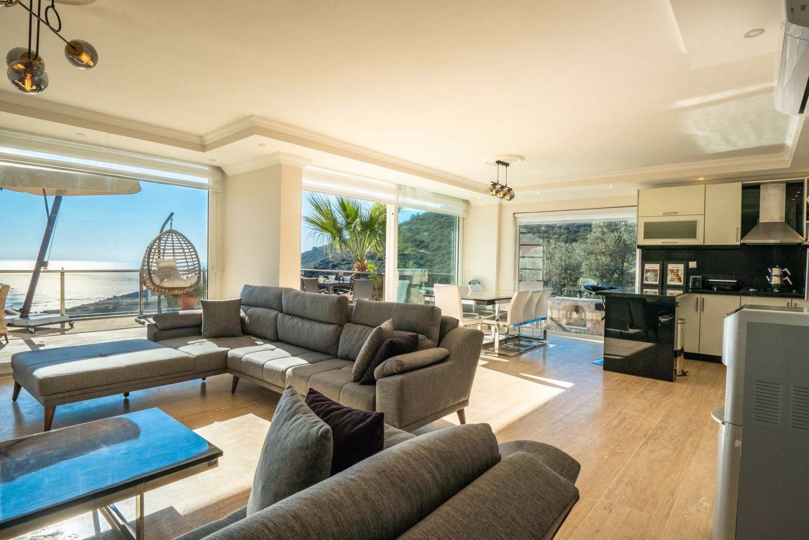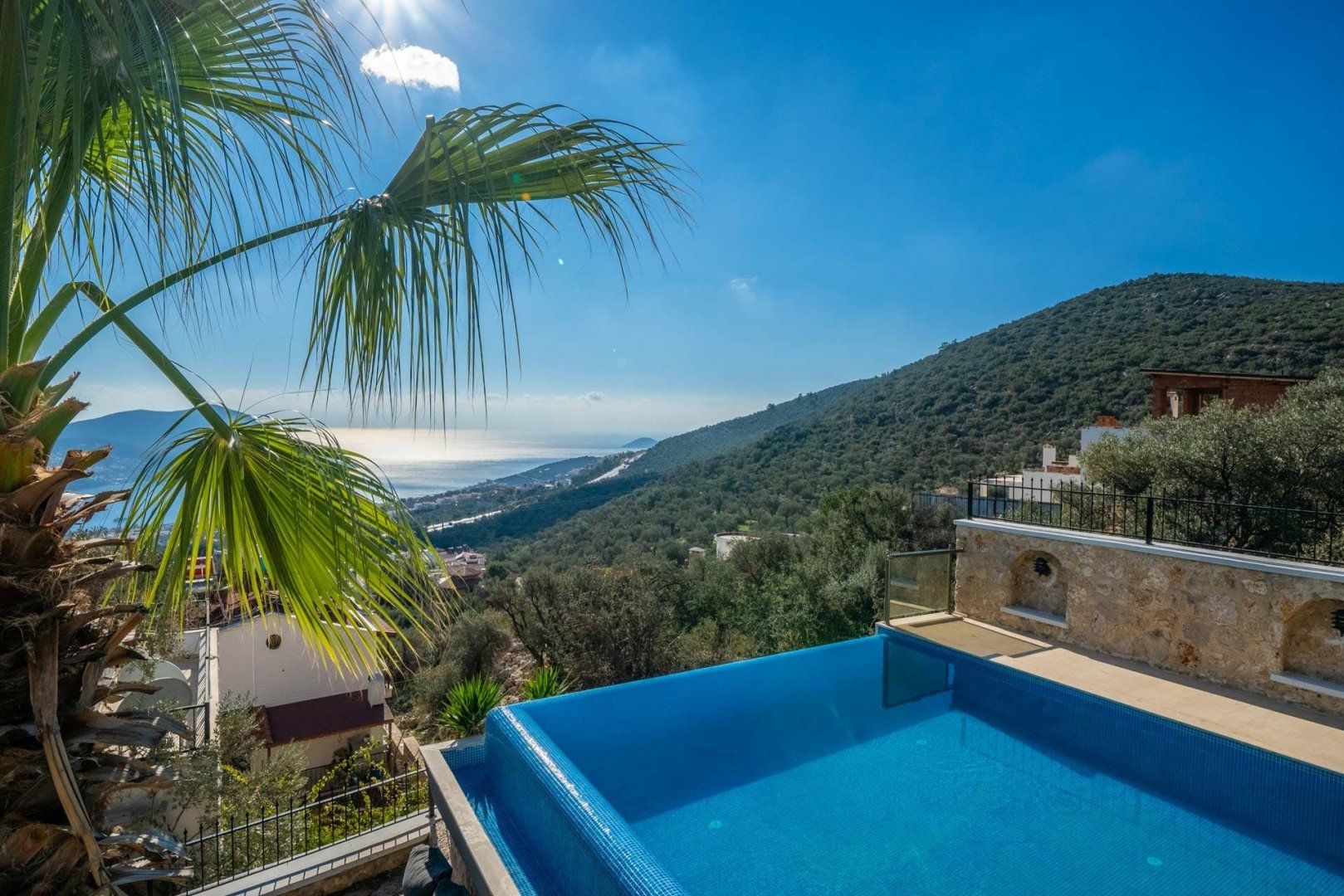 Perched high above the town of Kalkan with panoramic views over its bay and the stunning turquoise waters of the Mediterranean Sea – this spot epitomises luxurious serenity. Taking in the vistas comes easy from the infinity swimming pool, spanning terrace, south-facing main living area, and bedroom suites. And with direct access to the pool and spa from both the lower and upper terraces, you'll get to step straight from the bedrooms and into the sunshine. Meanwhile, the ping pong table, table football and games console are perfect for keeping the kids entertained. When you'd sooner go out, the restaurants, shops and beach clubs of Kalkan are found just a short drive (1.5 kilometres) down the hill.