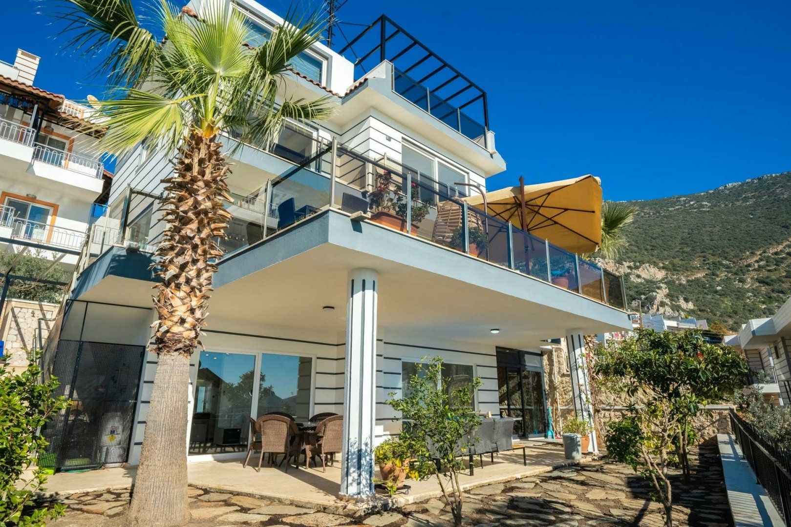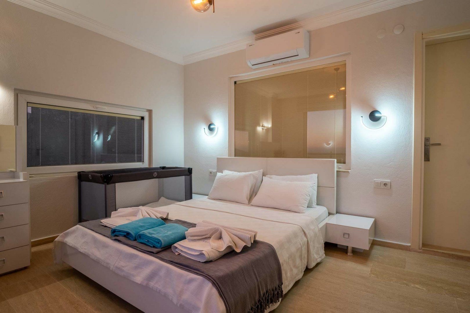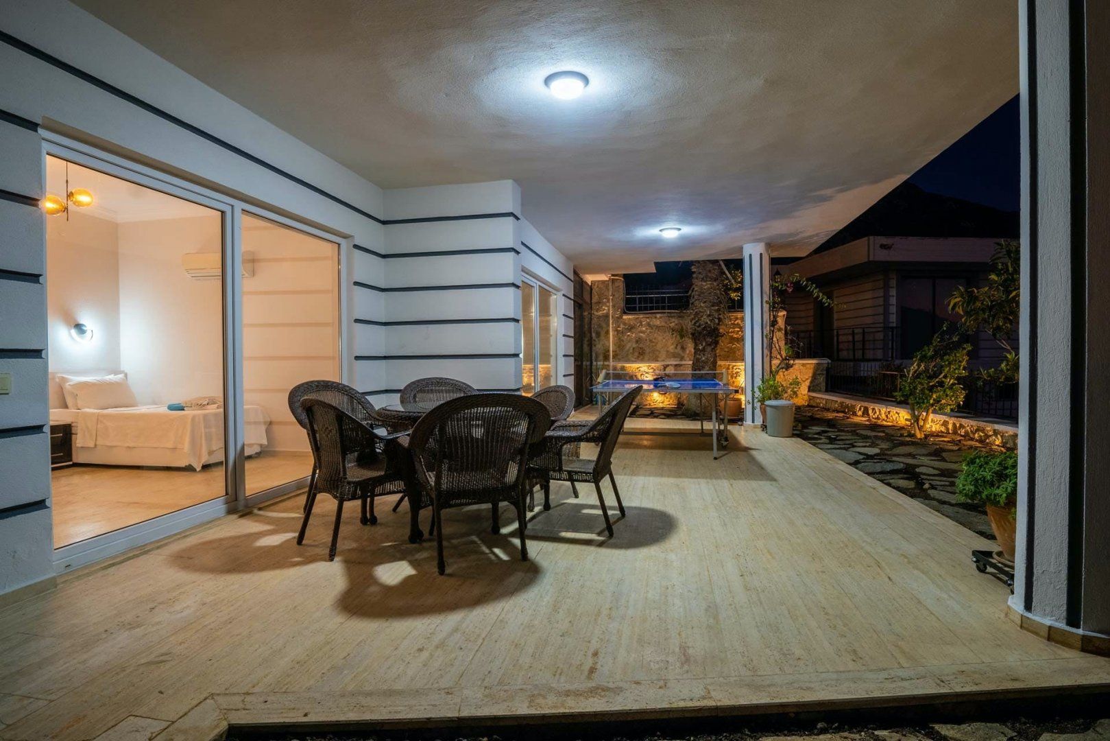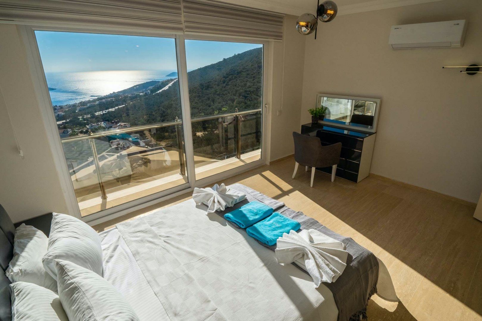 Perched high above the town of Kalkan with panoramic views over its bay and the stunning turquoise waters of the Mediterranean Sea – this spot epitomises luxurious serenity. Taking in the vistas comes easy from the infinity swimming pool, spanning terrace, south-facing main living area, and bedroom suites. And with direct access to the pool and spa from both the lower and upper terraces, you'll get to step straight from the bedrooms and into the sunshine. Meanwhile, the ping pong table, table football and games console are perfect for keeping the kids entertained. When you'd sooner go out, the restaurants, shops and beach clubs of Kalkan are found just a short drive (1.5 kilometres) down the hill.