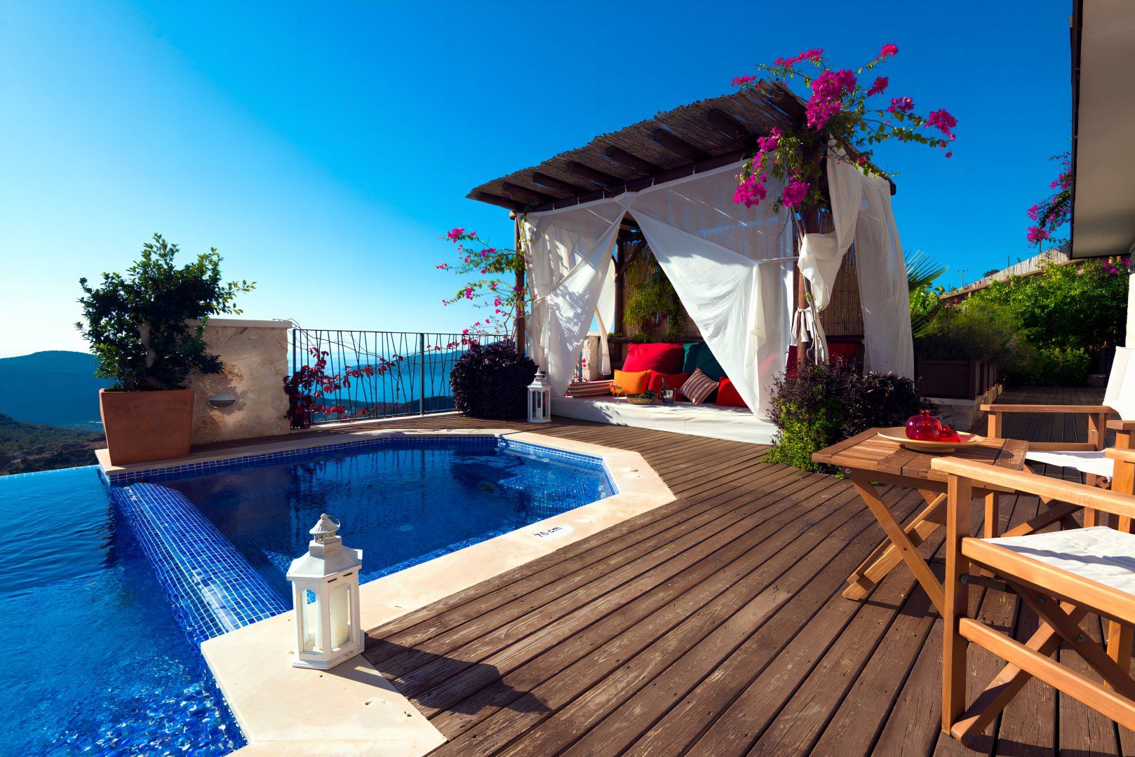 Boasting wonderful sea views, a Jacuzzi, and an infinity pool, this villa will appeal to water babies – though there’s something for just about everyone. The outside space is stunning, with shaded areas for when you need to escape the heat, as well as a barbecue and alfresco dining area on the terrace. The views don’t stop when you step inside, happily, as there are vast walls of glass ensuring you don’t miss a moment of the sunsets. You’ll need a car to get around easily, but it only takes ten minutes to drive to Kalkan beach and the old town.