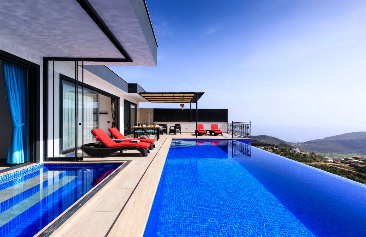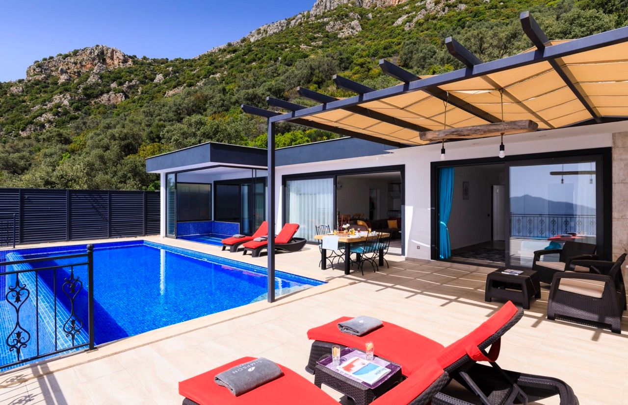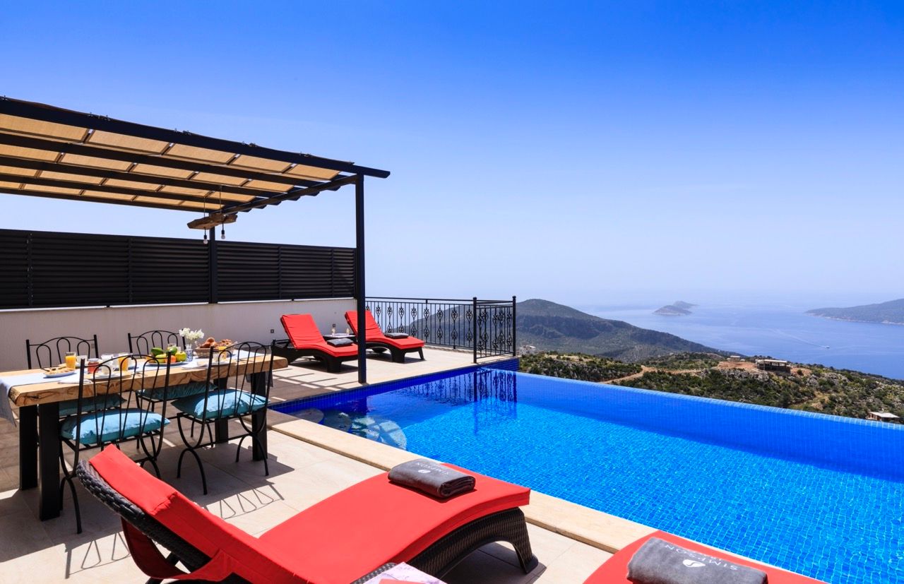 Situated high above the town of Kalkan, this thoughtfully-designed single-storey villa is a fantastic choice for small families or couples looking to spend some quality time together. Because of its elevated position, you'll get incredible sea views from the outdoor terrace – and can see as far as the Xanthos valley and beyond. We love the private infinity pool, as well as the master bedroom complete with a small plunge pool – the perfect spot to unwind after a day in the sun. It's just a 5 minute drive to a wide selection of shops, restaurants, and bars – and while car hire is included in your holiday, there are plenty of taxis available.
