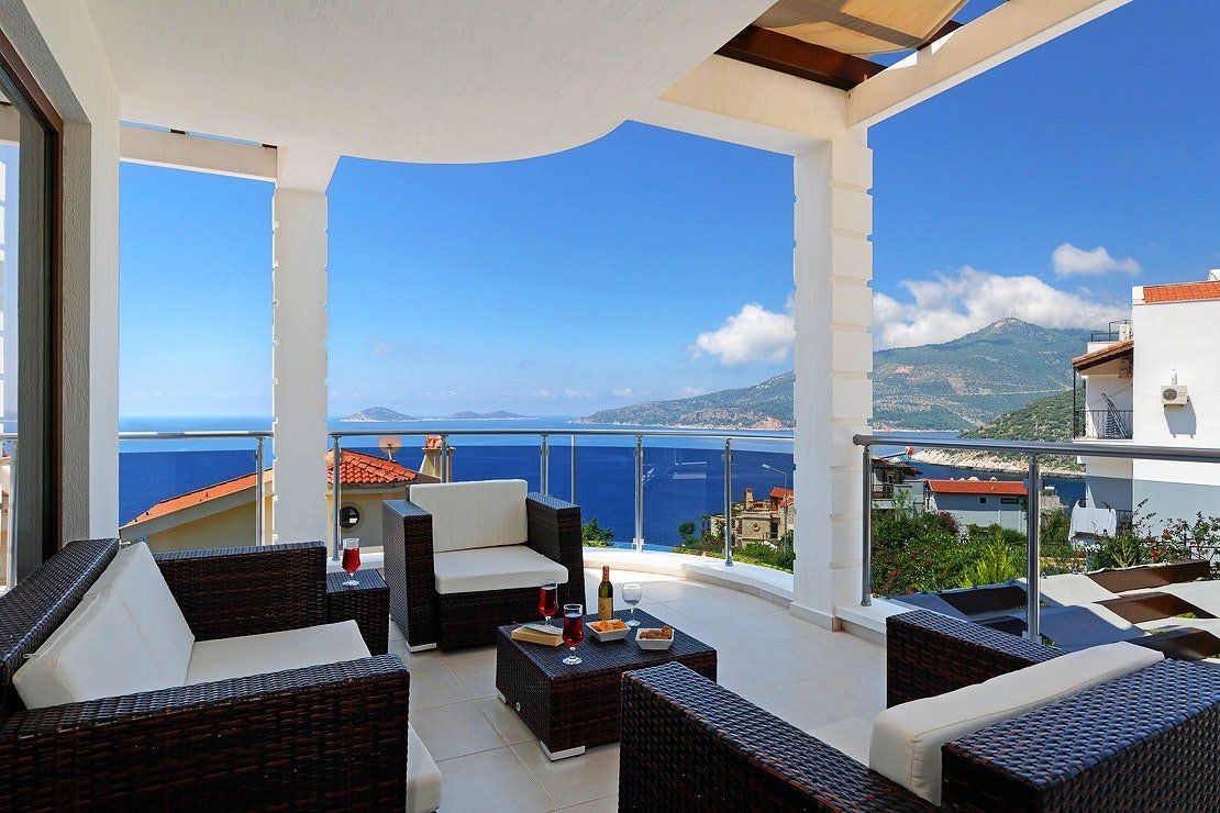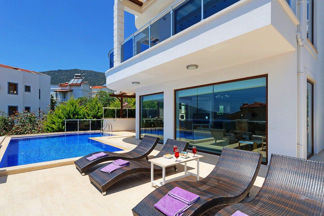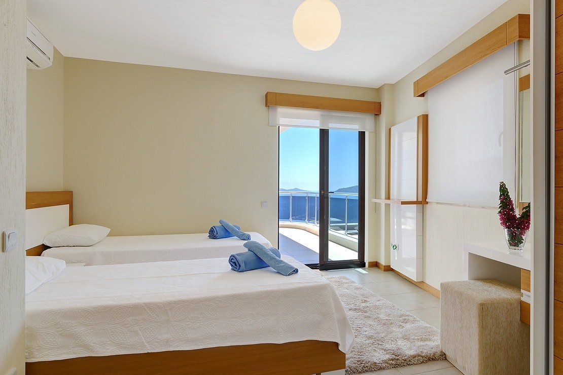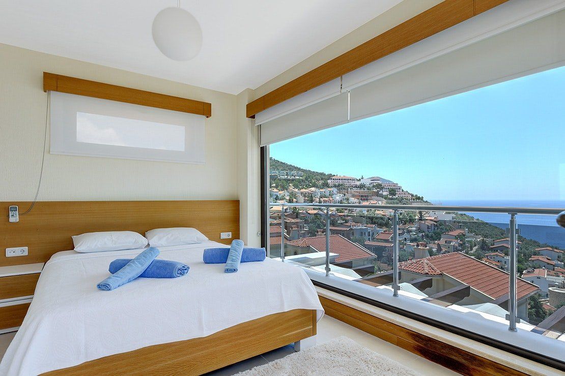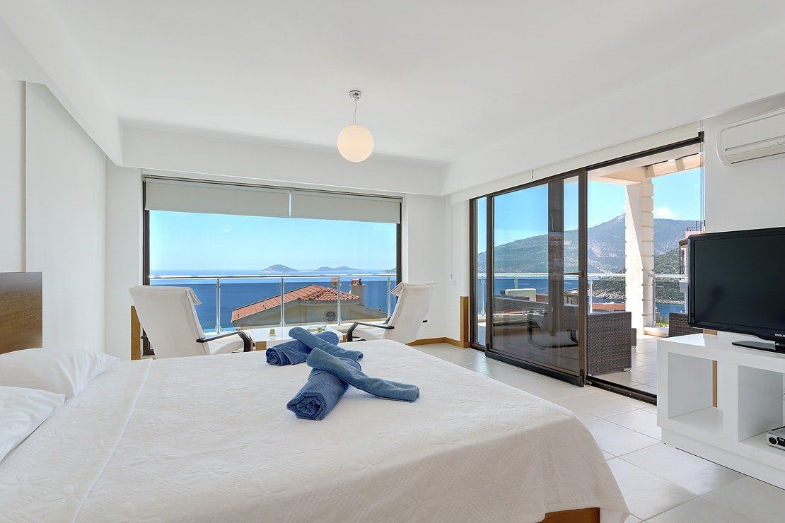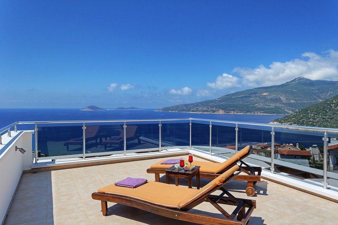 It’s all about the view at this sleek villa in the coastal town of Kalkan. Watch boats putter to the uninhabited Sıçan and Catal Adalar islands from the harbour (just a short, downhill walk away). If you’re not chartering a boat or sampling the delights of Kalkan’s seafood restaurants, days can be spent on the numerous terraces – one for each of the four floors of this towering villa. At ground level, it’s all about the swimming pool and barbecue area, and the view only gets better as you work your way up. Walls of glass lend a light-filled living room and bedrooms are just as bright with glass doors leading straight to balconies and patios.