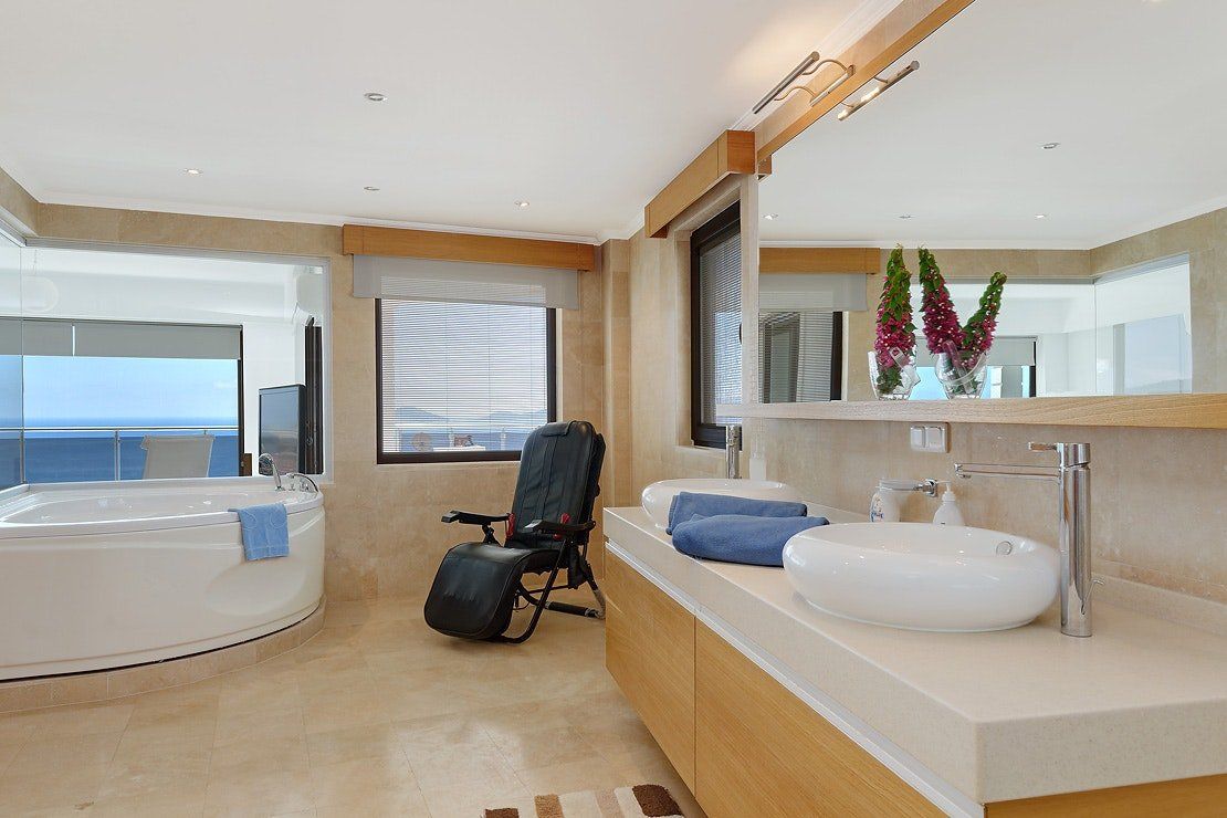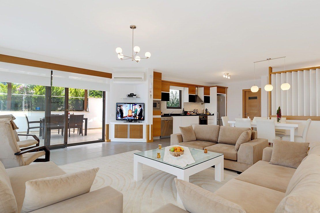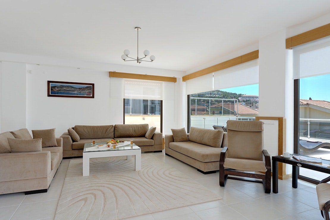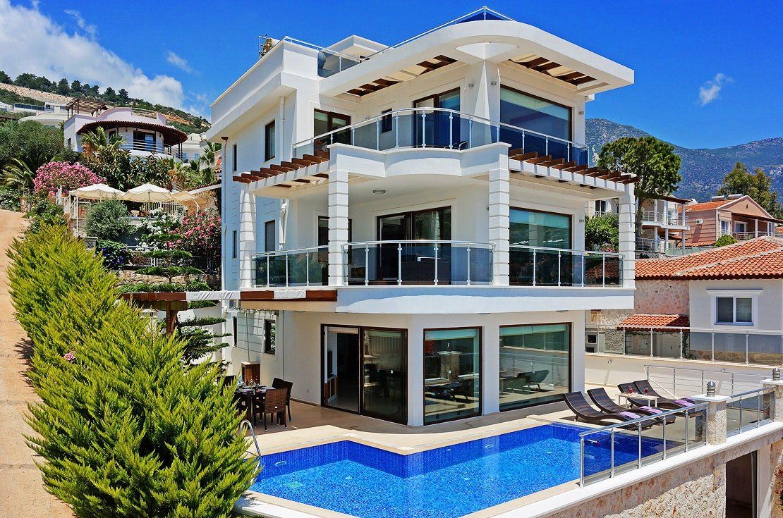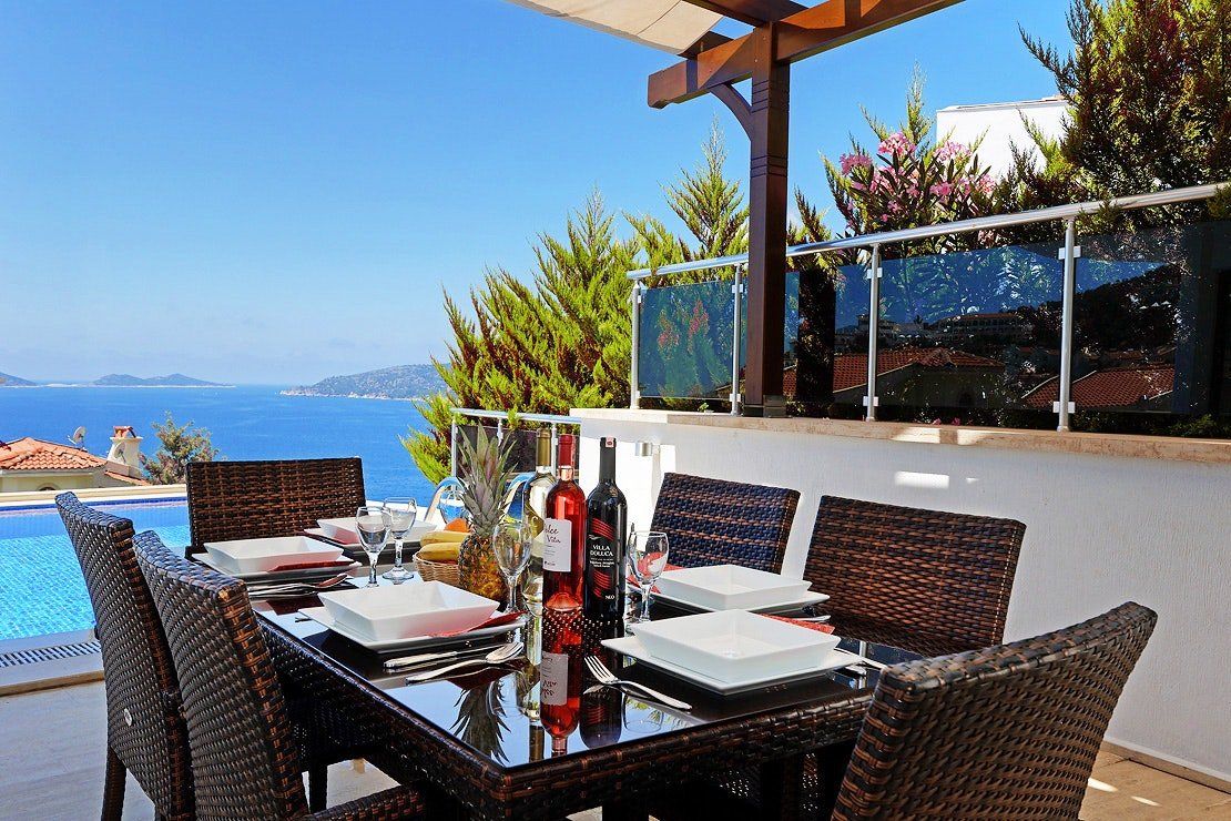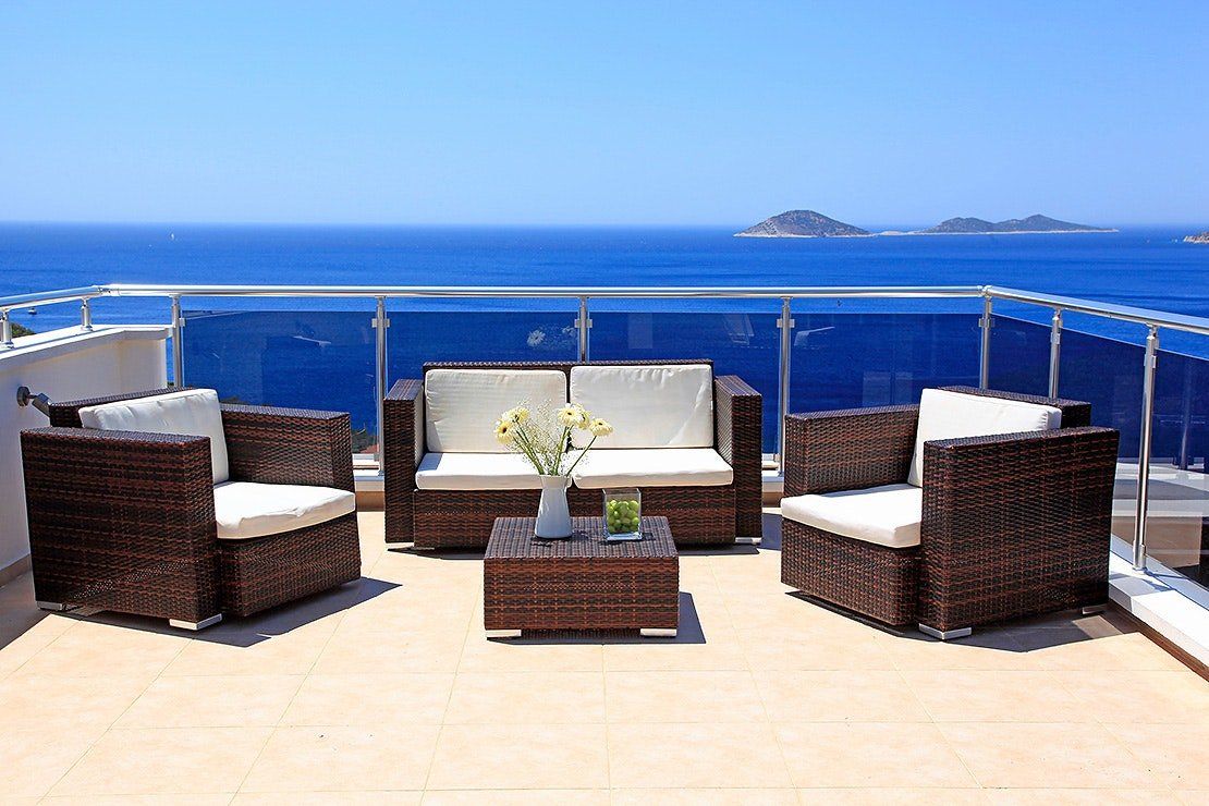 It’s all about the view at this sleek villa in the coastal town of Kalkan. Watch boats putter to the uninhabited Sıçan and Catal Adalar islands from the harbour (just a short, downhill walk away). If you’re not chartering a boat or sampling the delights of Kalkan’s seafood restaurants, days can be spent on the numerous terraces – one for each of the four floors of this towering villa. At ground level, it’s all about the swimming pool and barbecue area, and the view only gets better as you work your way up. Walls of glass lend a light-filled living room and bedrooms are just as bright with glass doors leading straight to balconies and patios.