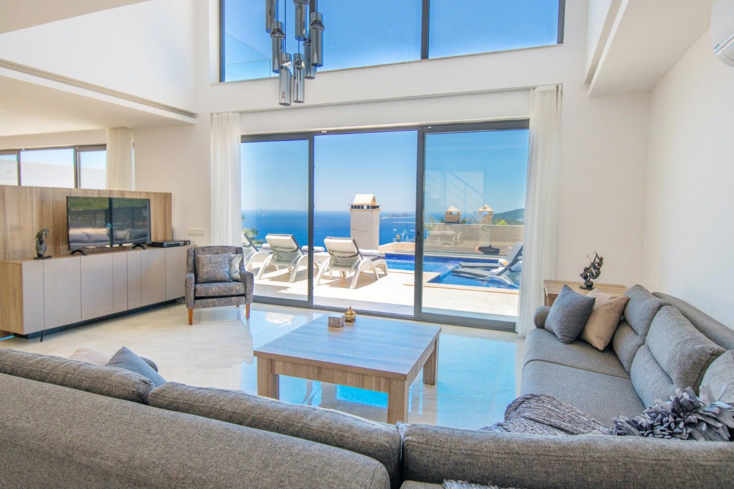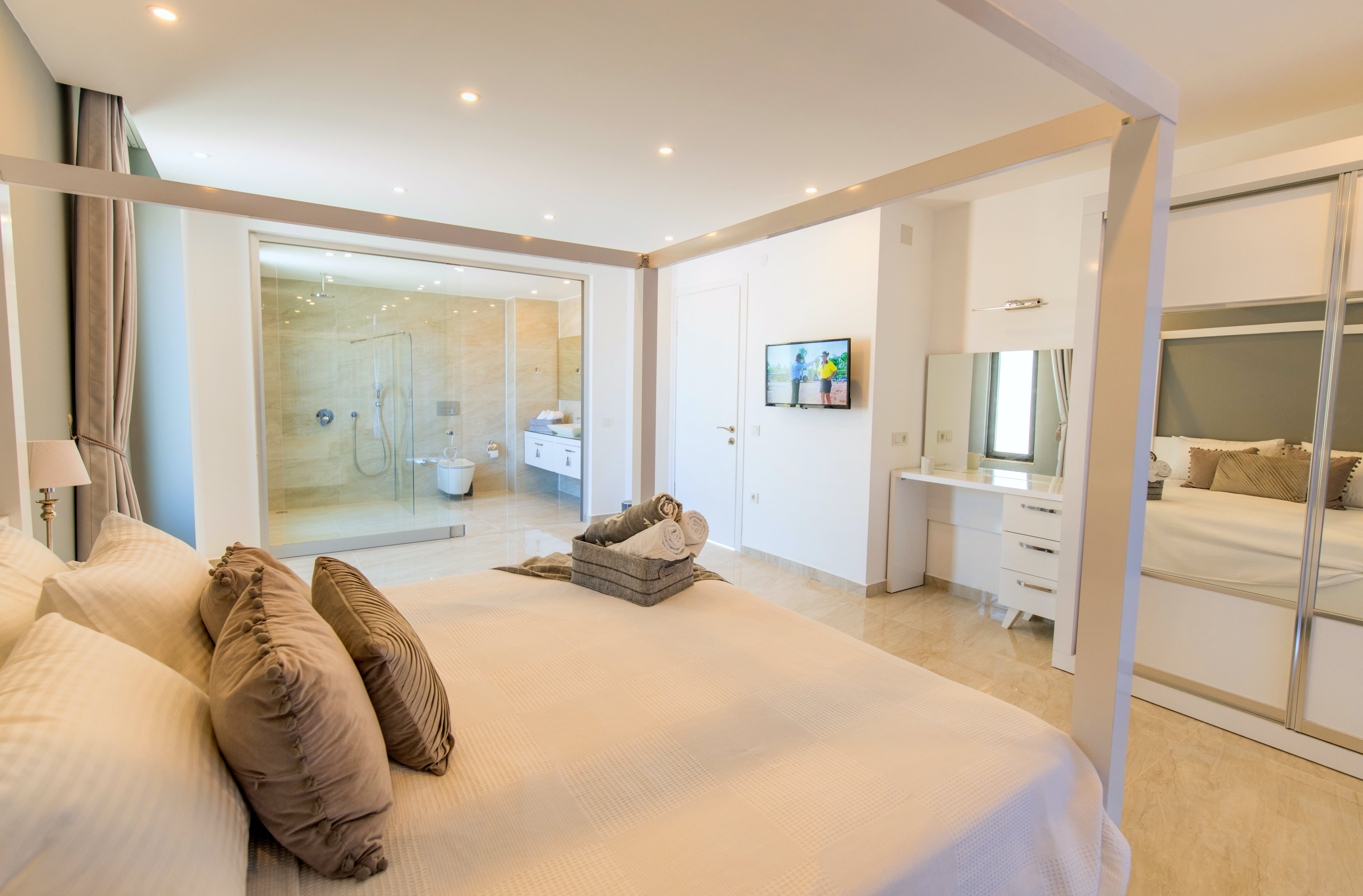 With a prime hillside position above the town of Kalkan, this villa is blessed with some sublime views of rooftops and the Mediterranean Sea. It's fair to say that the home's architect has made the most of this panorama. Outside, there are a wealth of spots from which you can admire the scenery, whether that's paddling in the heated infinity pool and adjoining Jacuzzi, sipping cocktails at the bar or merely relaxing on the glass-fronted terrace.