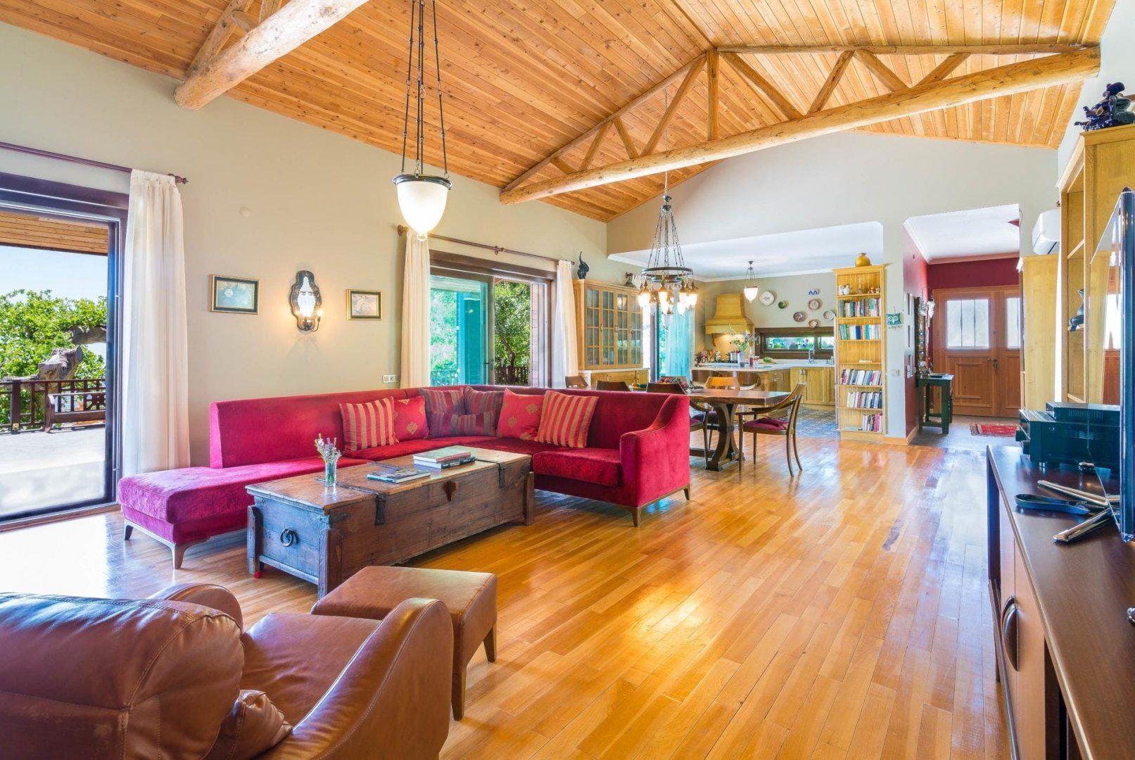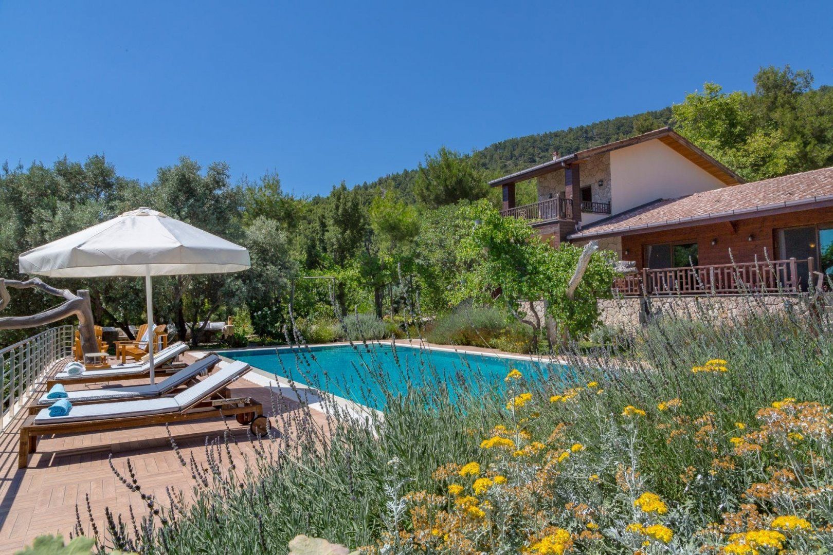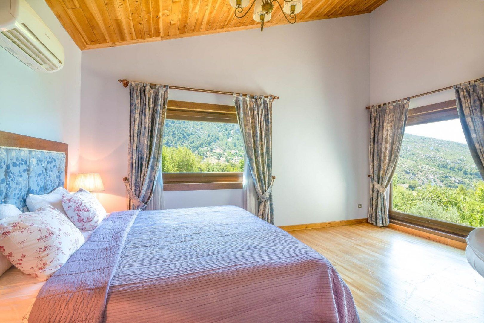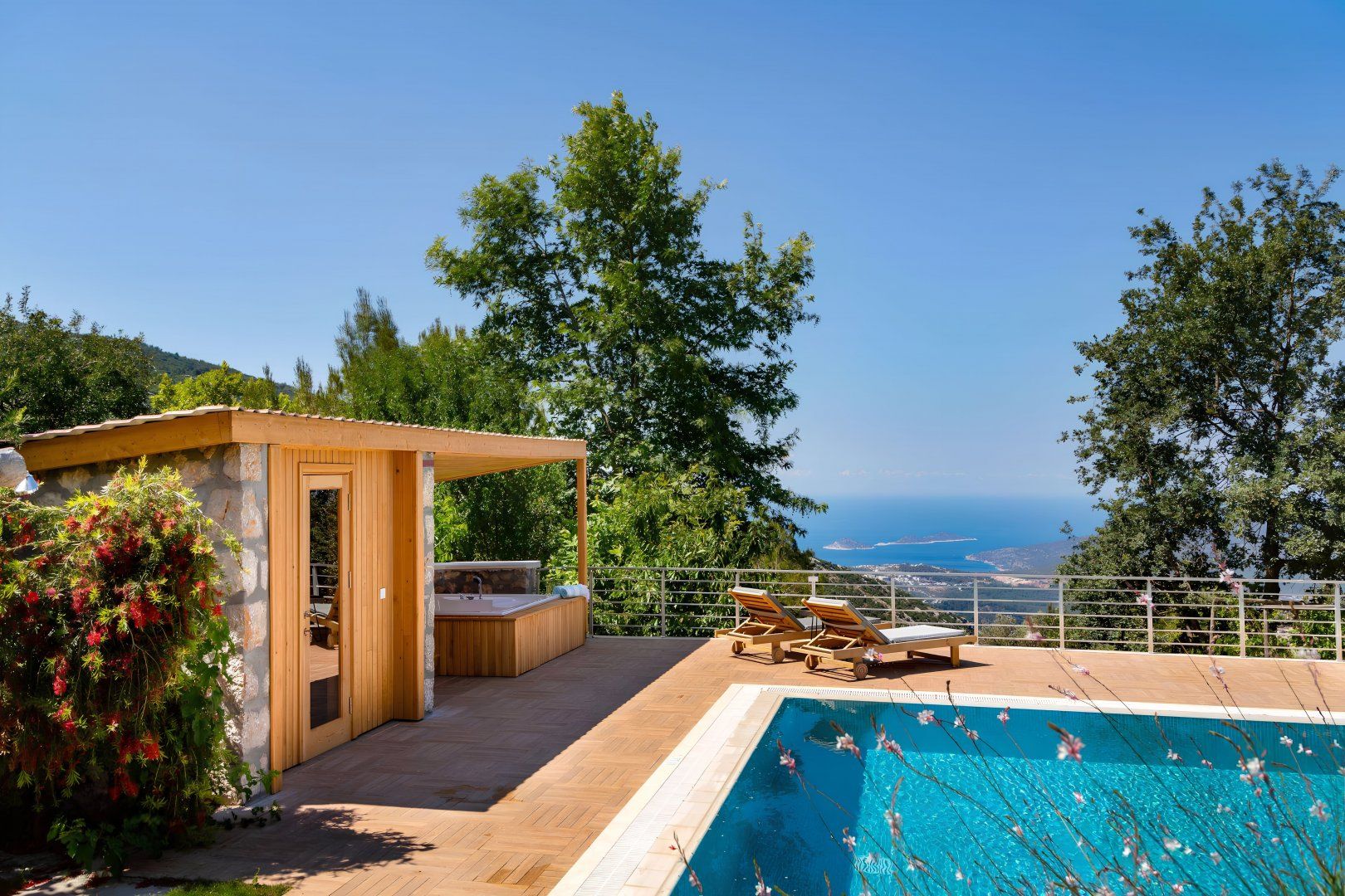 Relaxation is practically guaranteed at this Turkish villa. It comes with a swimming pool, jacuzzi, and sauna for your very own spa experience. There's also outdoor seating and a barbecue, so you can spend all day outdoors if you wish. The sleepy village of Islamlar where you can stock up on essentials or enjoy a local meal is just a short drive away and the historic town of Kalkan, known for its bustling harbour and cobbled streets filled with shops and restaurants, is just a twenty-minute drive away.