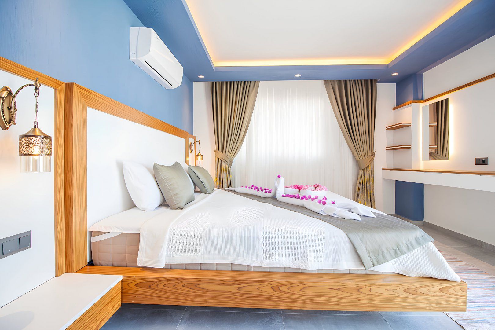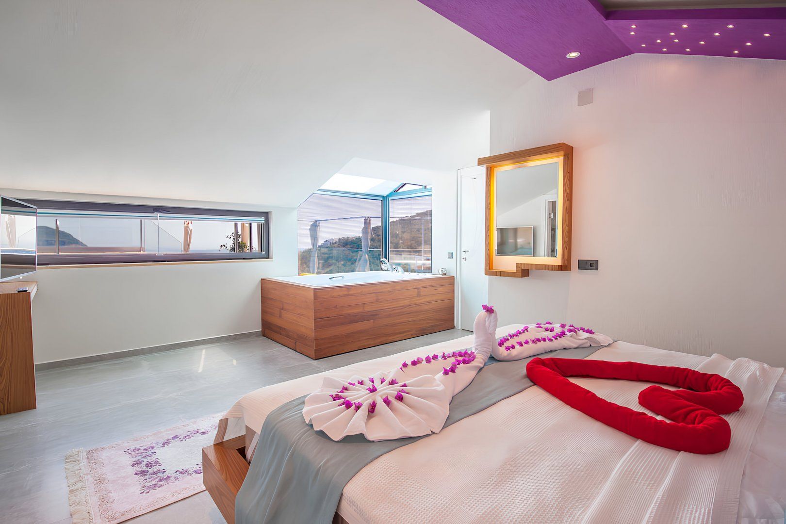 This Kalkan apartment offers entertainment and fantastic views in a small package. With its own private pool, sauna, well-equipped games room and spa bath in one of the bedrooms, it's ideal for family holidays and romantic getaways alike. There are lots of stairs here, so guests with reduced mobility may wish to look elsewhere. But proximity to the nearest restaurants and market means driving isn't necessary to have a great time. You might want to hire a taxi to get down to the coast, but even then it's under half an hour's drive away.