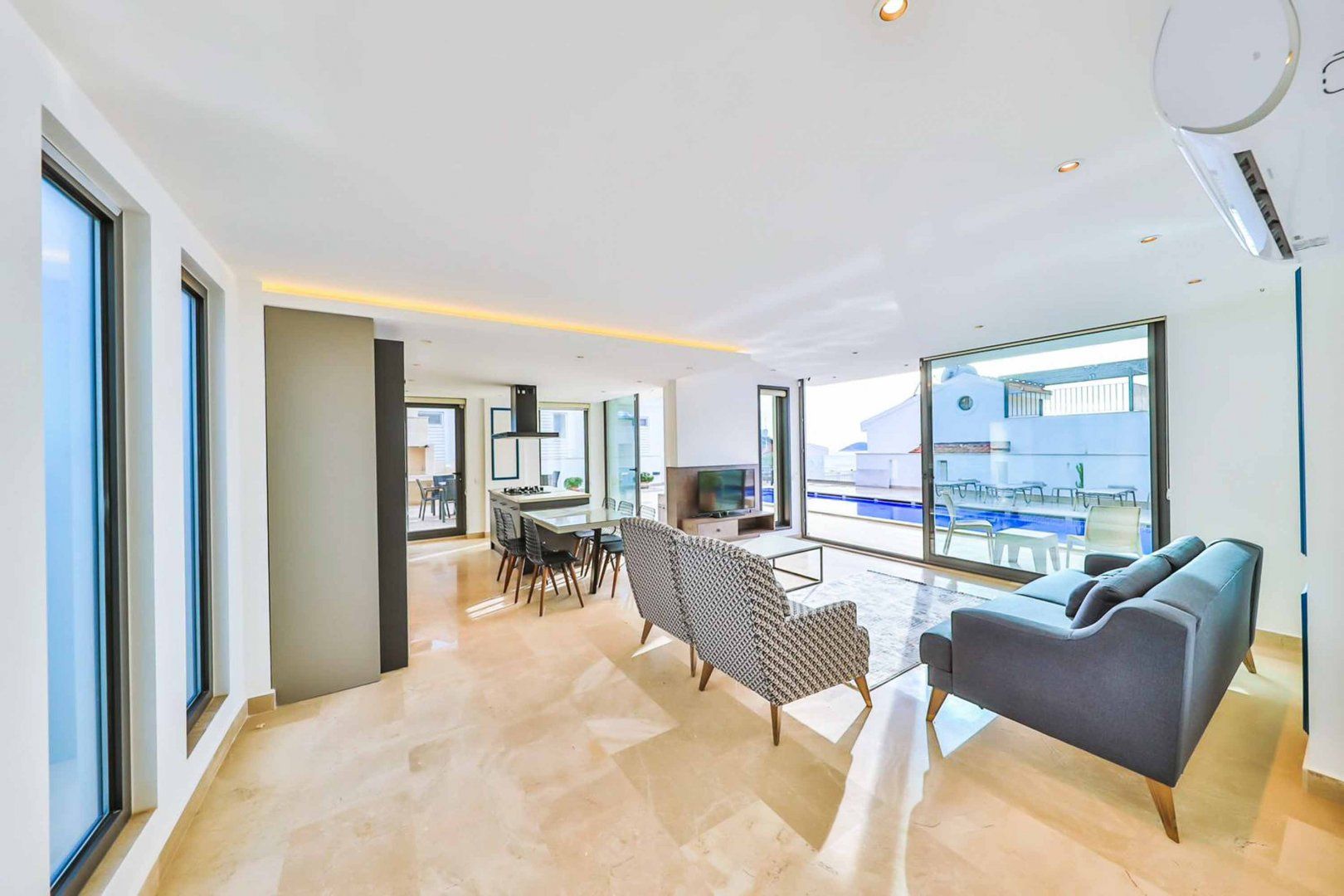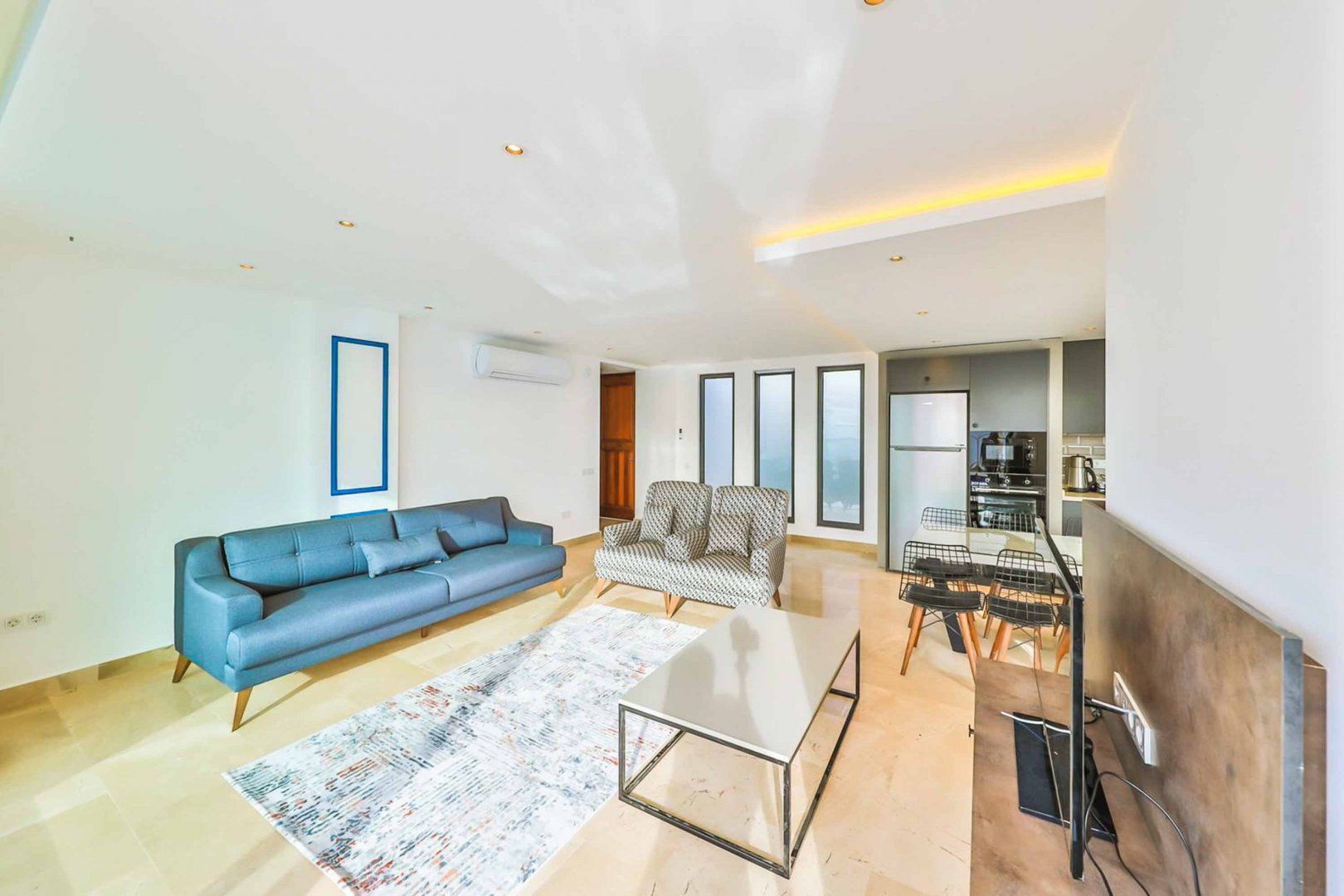 Calling all sea lovers – this modern and comfortable villa boasts incredible views across the Aegean and is just a short stroll away from the shores of Kalkan. Every bedroom here is en-suite – one even features a whirlpool bath for luxurious soaks after a day in the sun. We love the outdoor terrace area with its large private swimming pool, sun loungers, and alfresco dining space – with built-in BBQ facilities. Need to catch up on emails? There's wifi throughout the property and plenty of tables that can double up as laptop-friendly workspaces. While there are lots of shops and restaurants within walking distance, we recommend hiring a car to explore the wider area.