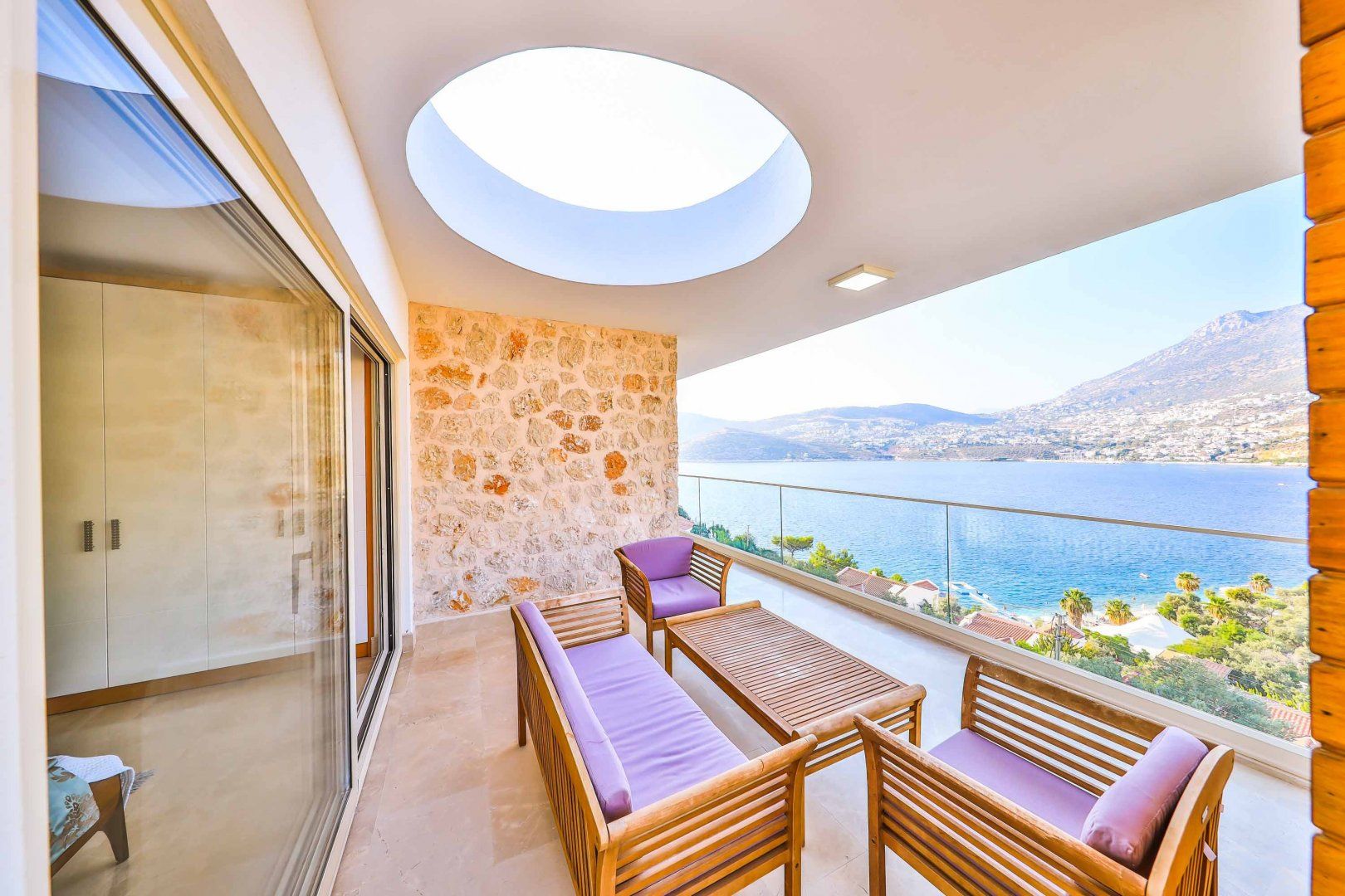 Set at the foot of the Taurus Mountains, this stone villa is in easy reach of the beautiful sights of Kalkan. Spanning three stories, a balcony on each level offers stunning views of the coastline, with one even housing fitness equipment for a workout with a view. That said, this home may not be suitable for those with limited mobility. Inside, some of the outdated interior may not be to everyone’s taste, but the generously sized terrace and views from the infinity pool certainly makes up for it. Looking for the nearest beach? This home is less than a ten-minute walk to Kalkan beach, restaurants and the harbour – perfect for discovering the coastline by boat.